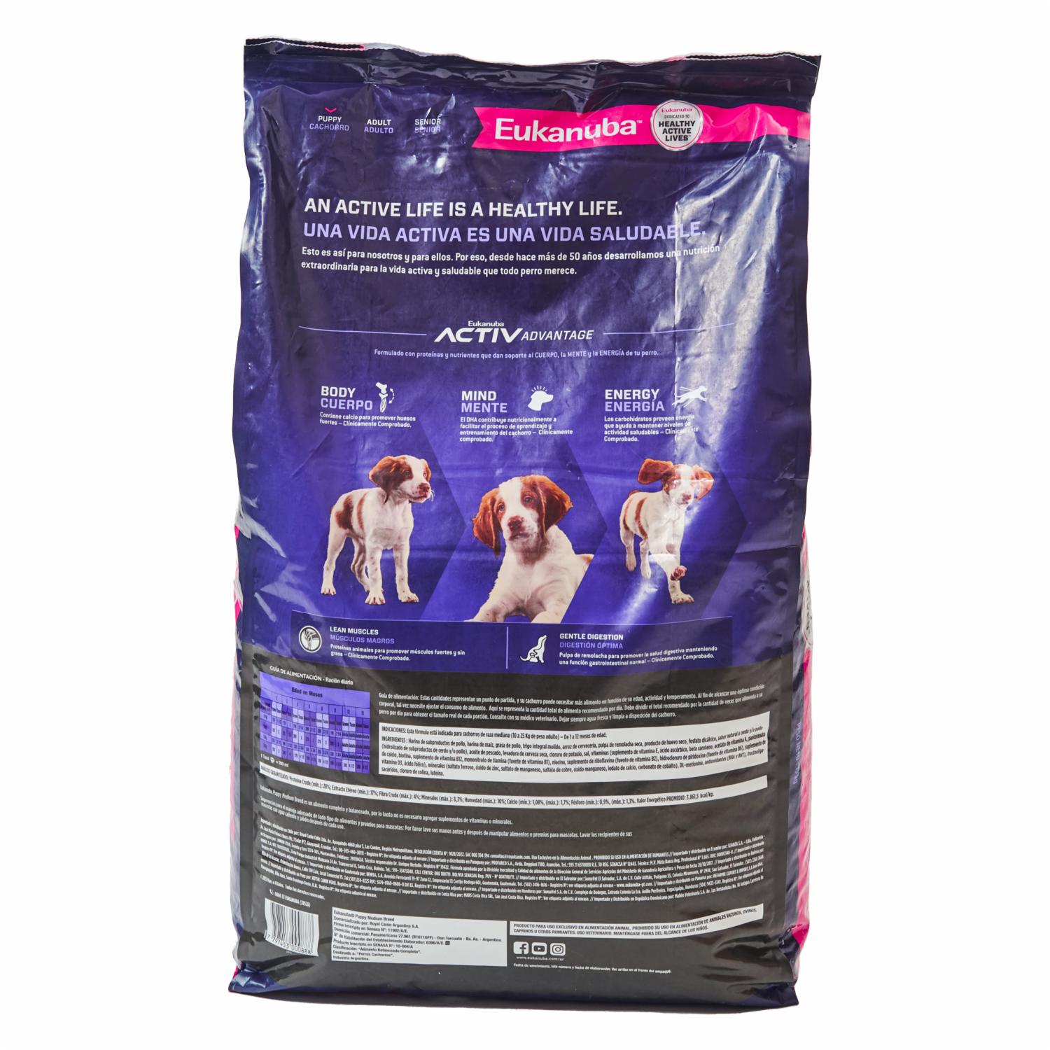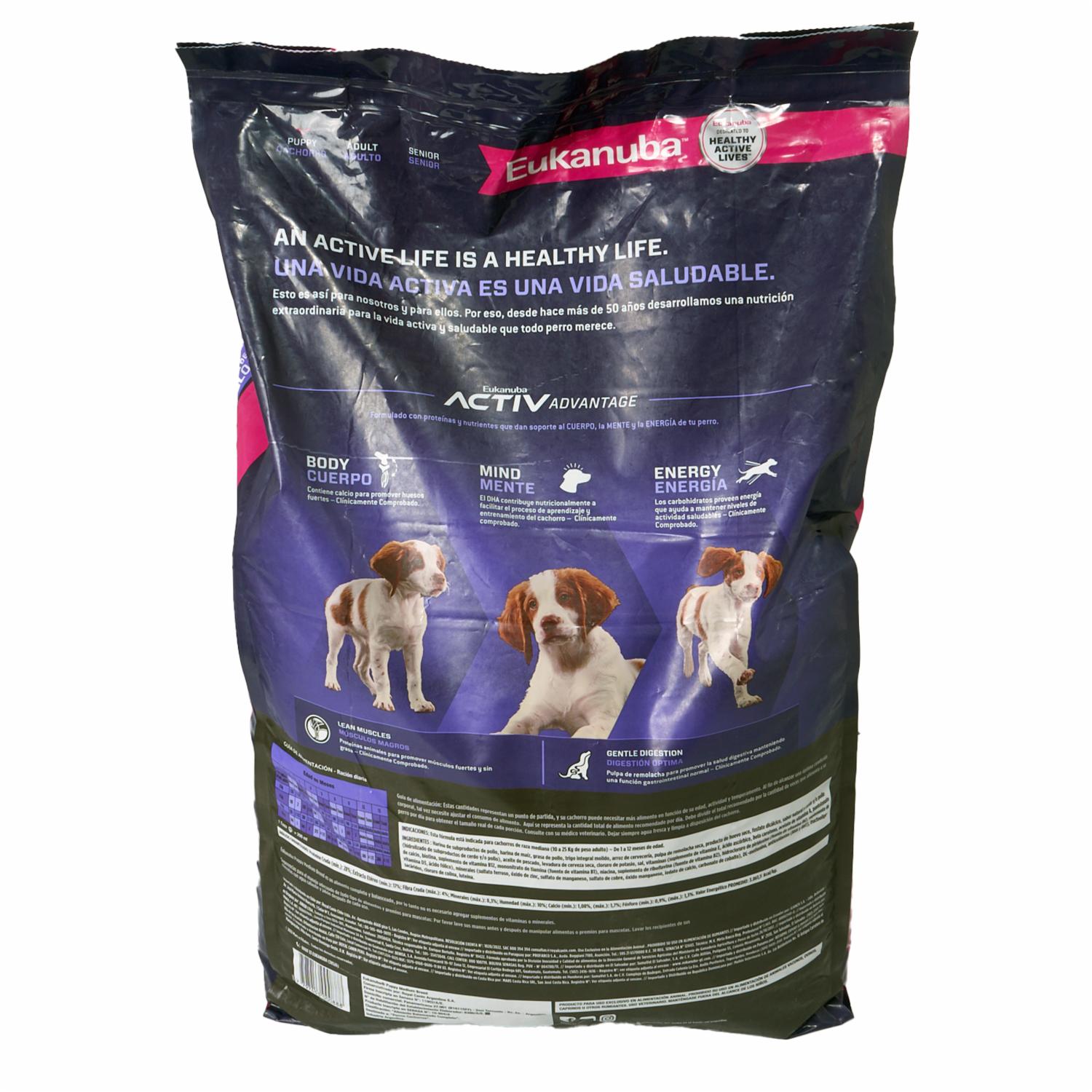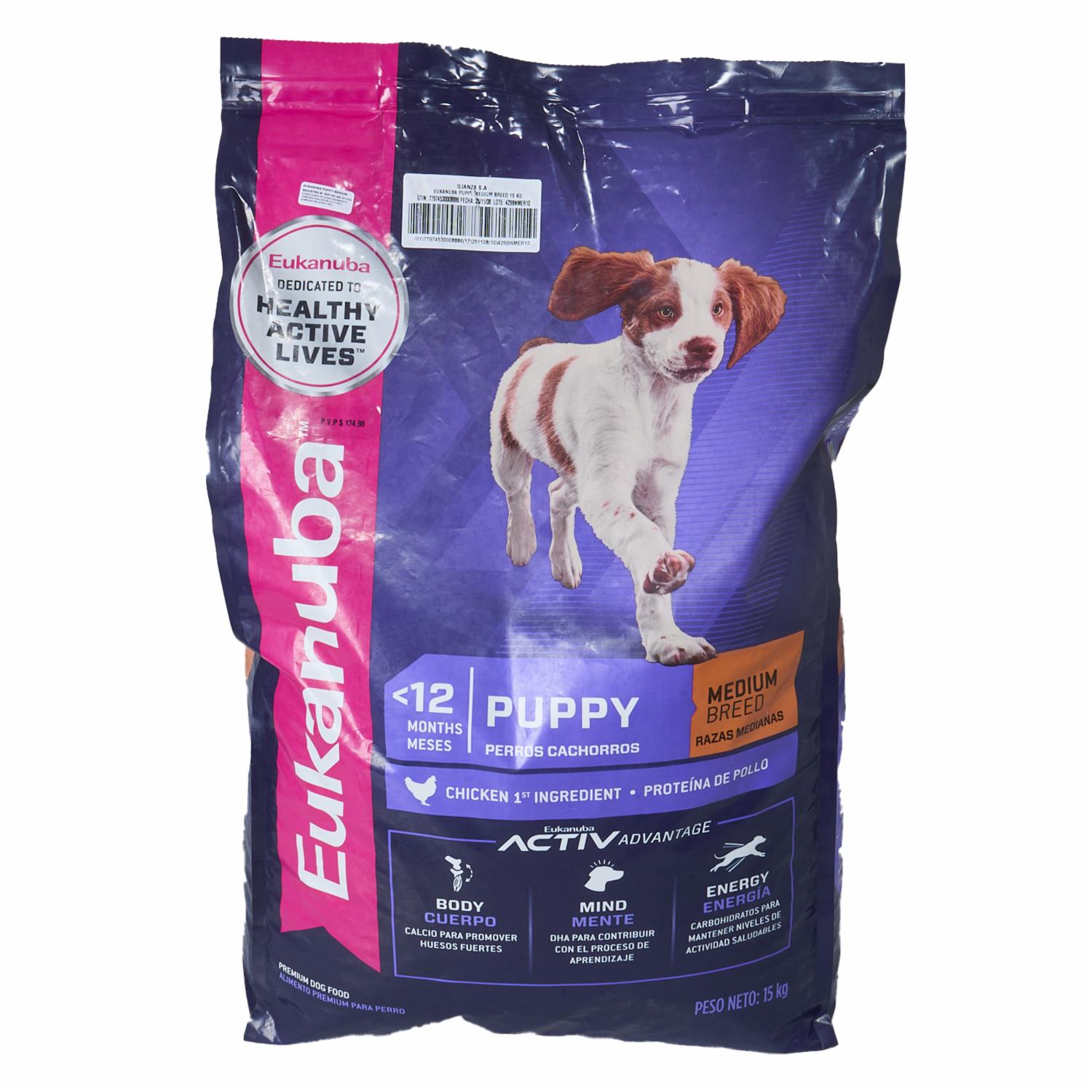 - Brinda a tu perro adulto de raza mediana (entre 10 y 25 kg) una nutrición avanzada con el Alimento para Perros Eukanuba Adulto Raza Mediana Sabor Pollo 15 kg. Formulado con pollo fresco y deshidratado, este alimento seco proporciona una dieta equilibrada que apoya la salud general y el bienestar de tu mascota