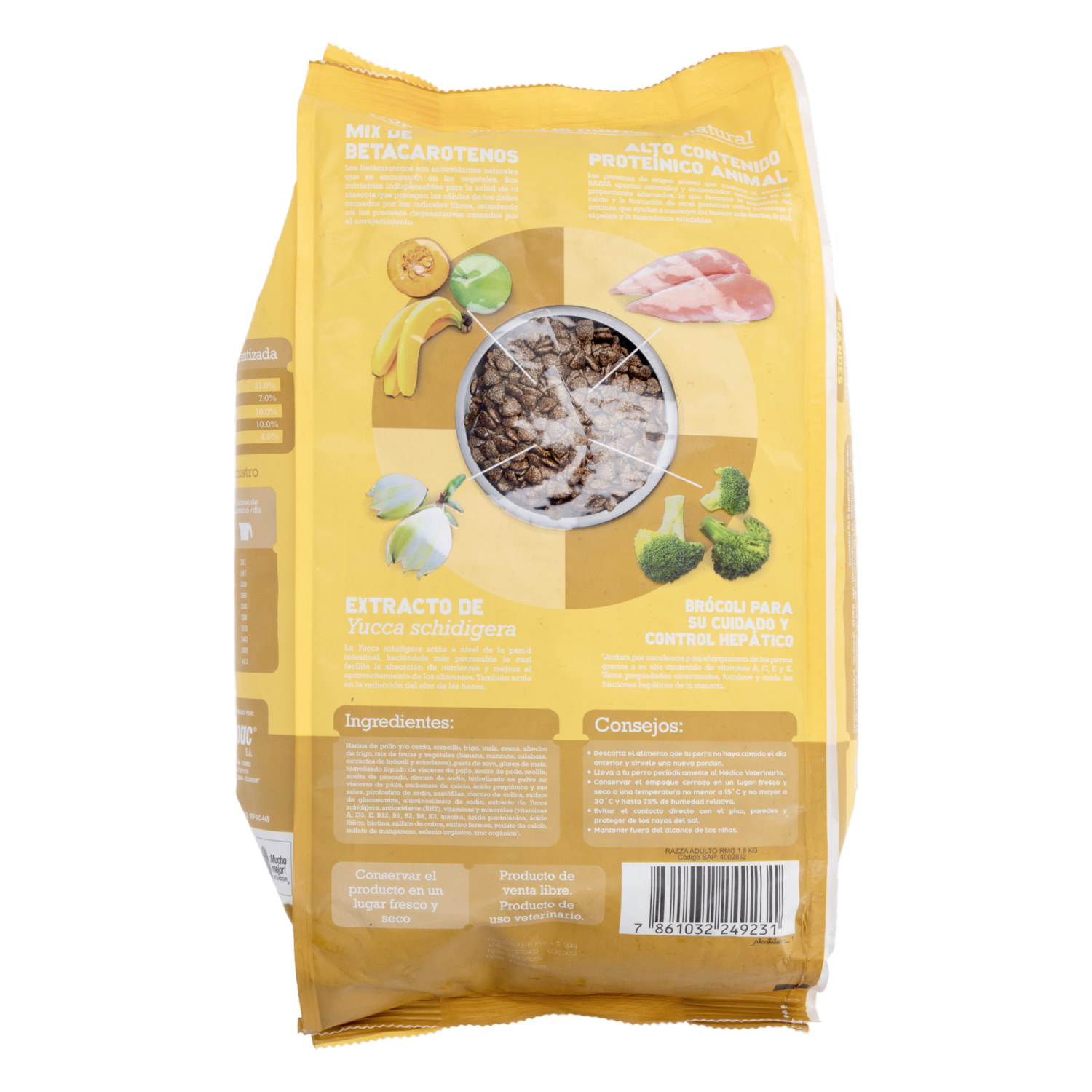- Características: ? Peso: 1800 g ? Para razas medianas y grandes ? Fórmula balanceada ? Croquetas adaptadas al tamaño ? Uso diario