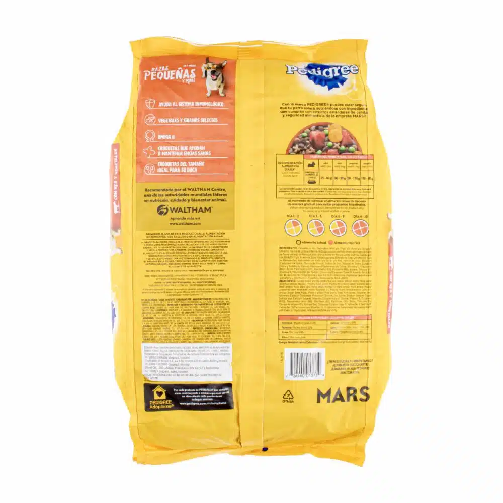 Este alimento para perros adultos de PEDIGREE está diseñado específicamente para razas pequeñas y viene en un paquete de 2000 gramos. Está formulado para proporcionar una nutrición equilibrada y adecuada para perros adultos de razas pequeñas, teniendo en cuenta sus necesidades específicas