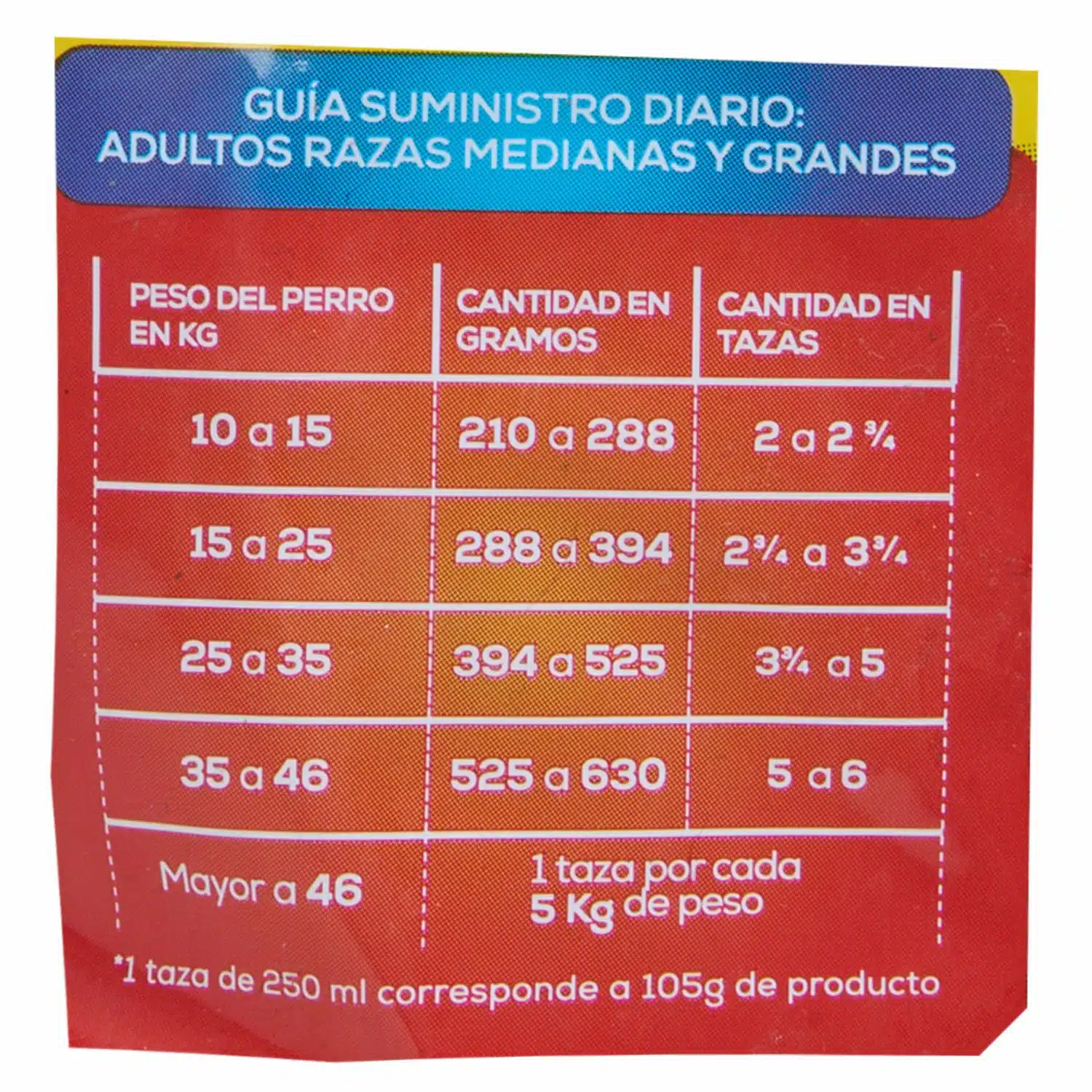 Este alimento está diseñado cuidadosamente para proporcionar los nutrientes esenciales que los perros adultos necesitan para mantener su energía, salud y bienestar.Incluyen proteínas de alta calidad, vitaminas, minerales y otros ingredientes clave que apoyan la salud de la piel, el pelaje, la digestión y el sistema inmunológico
