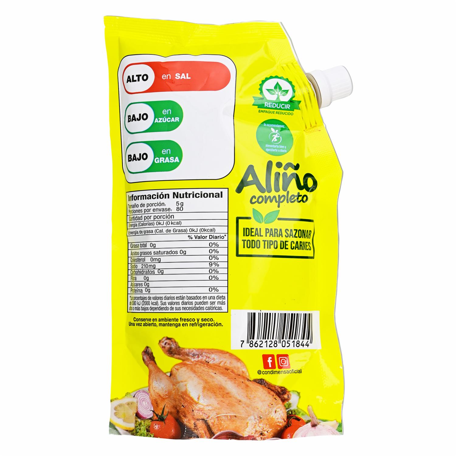 consultando preciosAliño Completo Doy Pack CONDIMENSA 400 G – CONDIMENSA. Disponible en nuestros locales. Precio y stock pueden variar según la tienda.