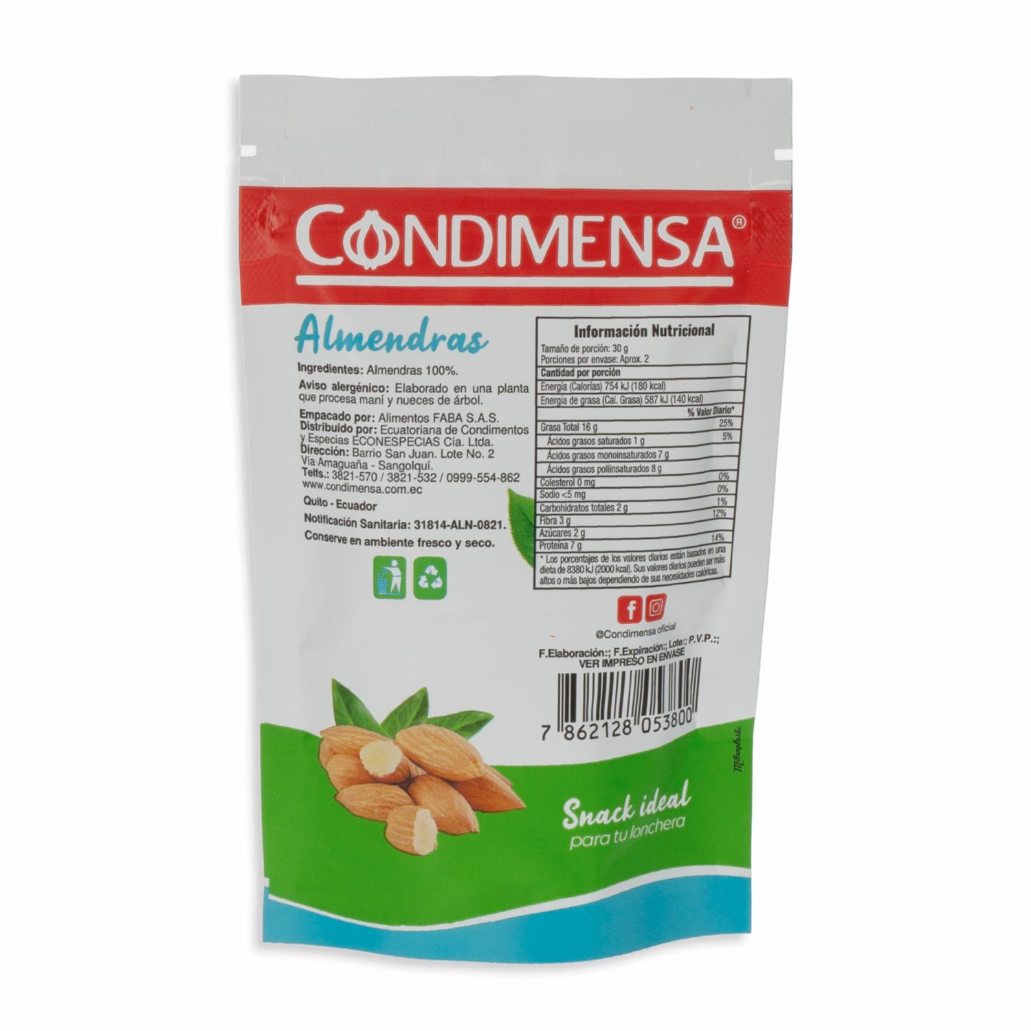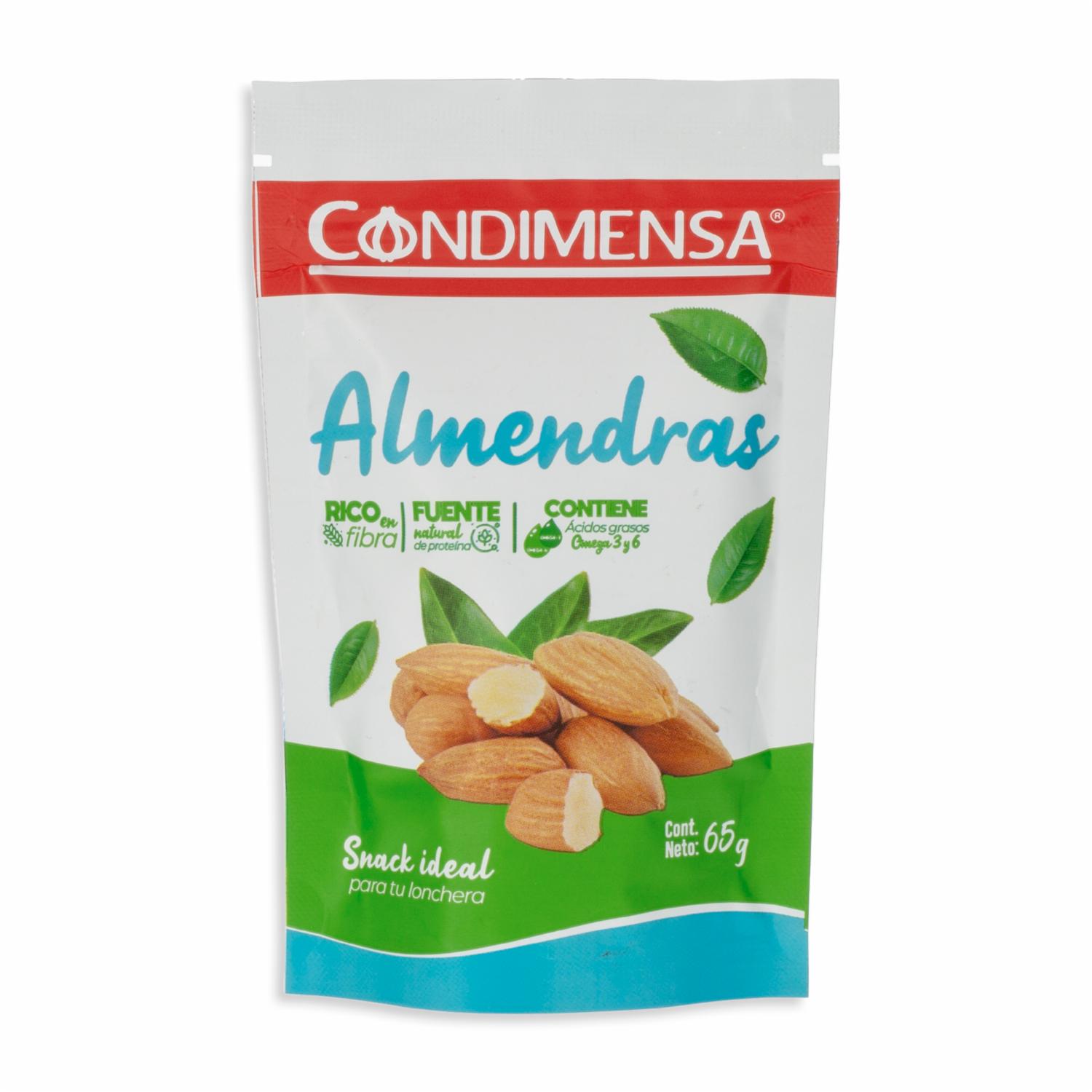 Almendras Natural CONDIMENSA 65 G – CONDIMENSA. Disponible en nuestros locales. Precio y stock pueden variar según la tienda.