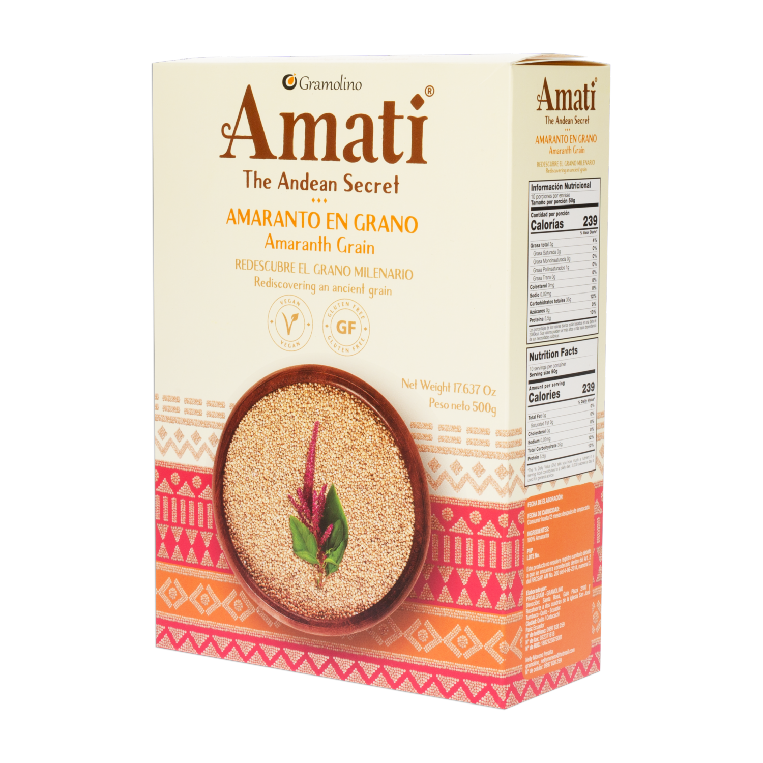 Amaranto En Grano Blanco Vegano Sin Gluten AMATI THE ANDEAN SECRET 500 G