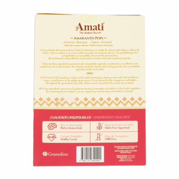 • Amaranto 100% proveniente de Comunidades Indìgenas del país bajo la modalidad de Comercio Justo. Pop de amaranto 100X100 natural, sin conservantes y preservantes, GLUTEN FREE
