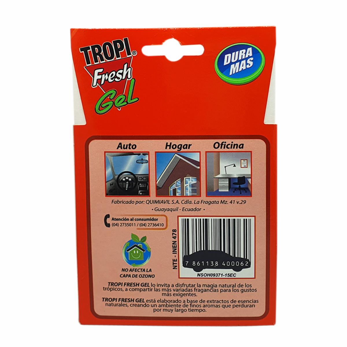 - Ambiental para auto Tropi Fresh GEL FRESA. Disfruta de una experiencia única con esencias naturales. Crea un ambiente perfecto en tu vehículo que perdura por mucho tiempo