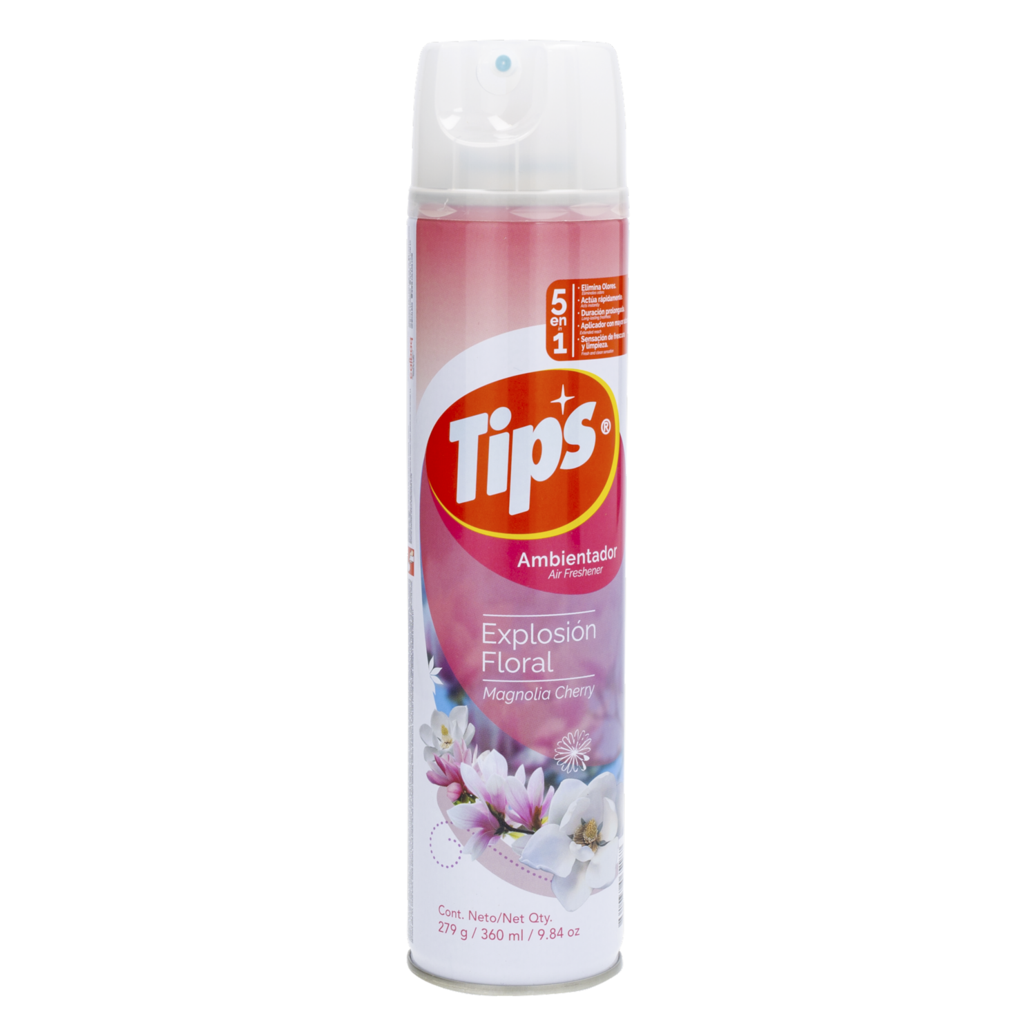 - El ambientador en aerosol Tips Magnolia Cherry transforma tus espacios con una fragancia floral y envolvente que aporta una inmediata sensación de limpieza y confort. Su fórmula de acción rápida neutraliza malos olores y deja un aroma duradero, ideal para refrescar ambientes interiores, mientras su práctico aplicador facilita una dispersión uniforme y de mayor alcance