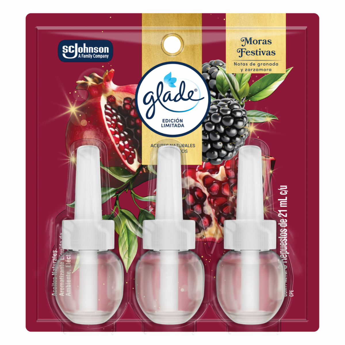 Ambiental Aromatizante En Aceite Edición Limitada Moras Festivas Respuesto x3 GLADE 63 Ml