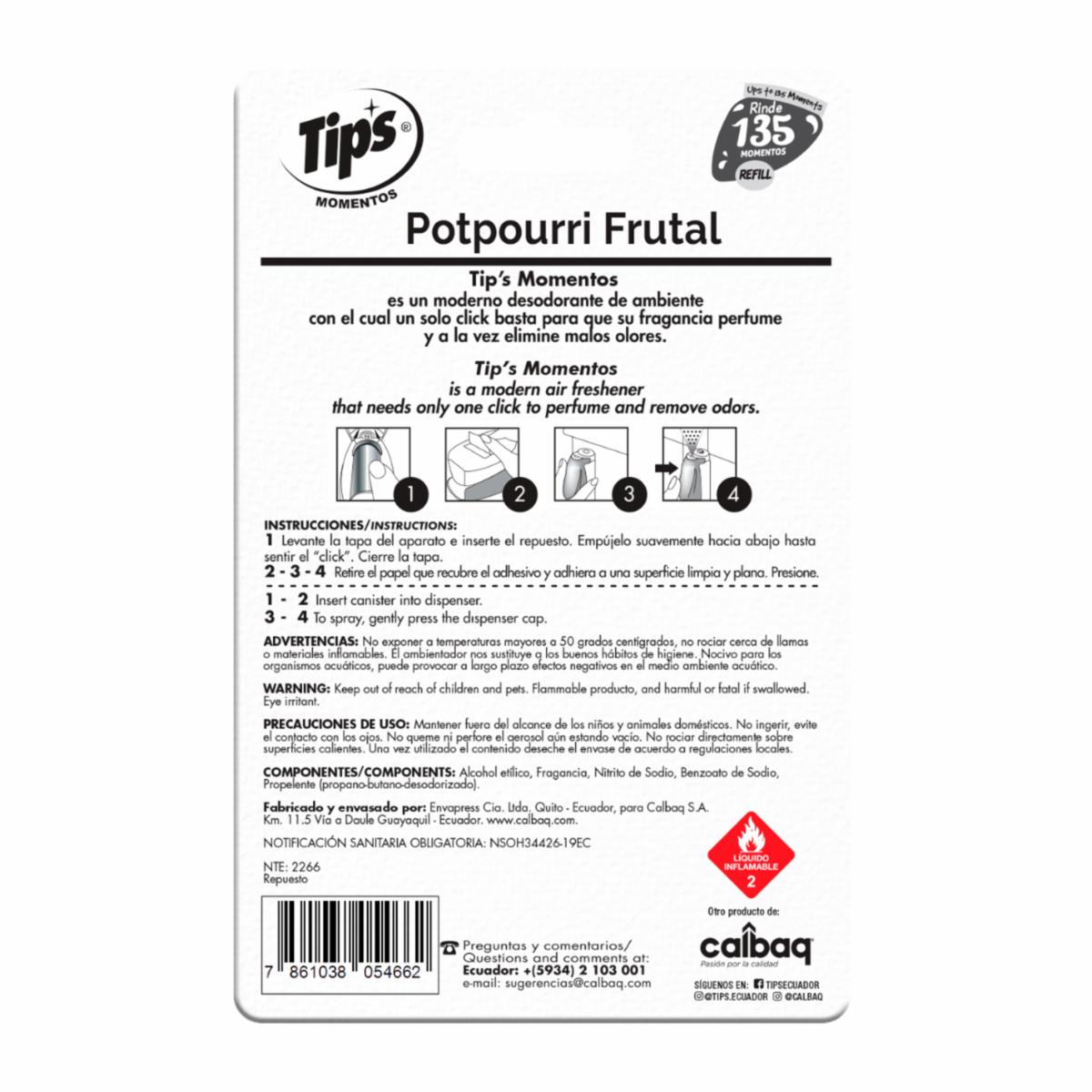 Desodorante Ambiental Momentos Popurrí Repuesto TIPS 12 Ml