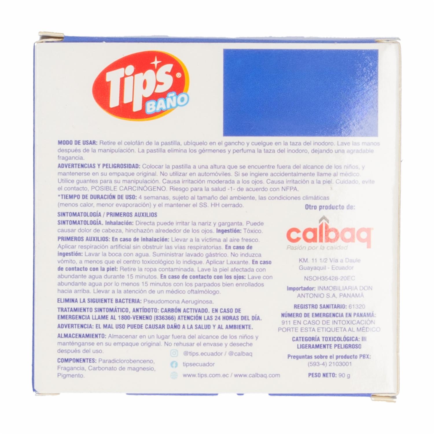 consultando preciosAmbiental Pastilla Par Baño Frescura Azul TIPS 90 G – TIPS. Disponible en nuestros locales. Precio y stock pueden variar según la tienda.