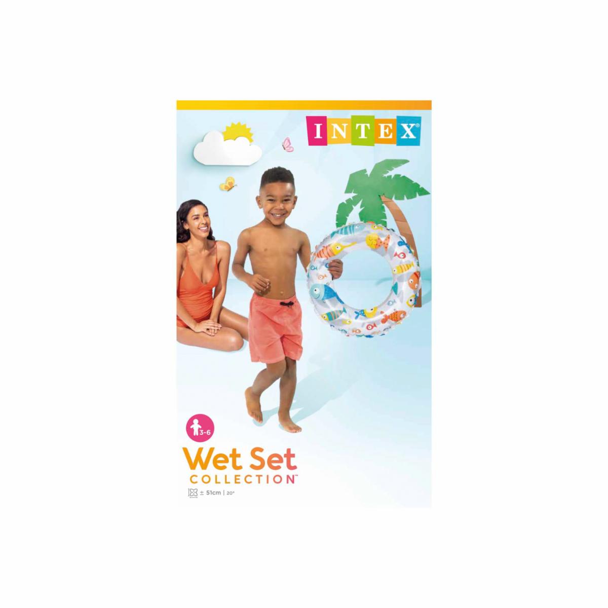 - Flotador decorado Intex. Cómodo, ligero y práctico, fácilmente lavable y duradero. Flotador de diámetro 51 cm, hecho de PVC 0,18 mm. transparente con la parte superior impresa con 3 patrones de diferentes diseños, estrellas de mar, peces y círculos