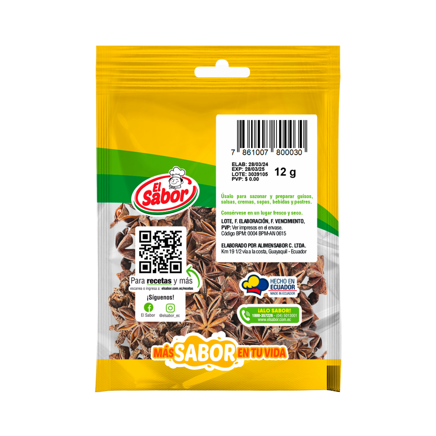 consultando preciosAnís Estrellado EL SABOR 12 G – EL SABOR. Disponible en nuestros locales. Precio y stock pueden variar según la tienda.