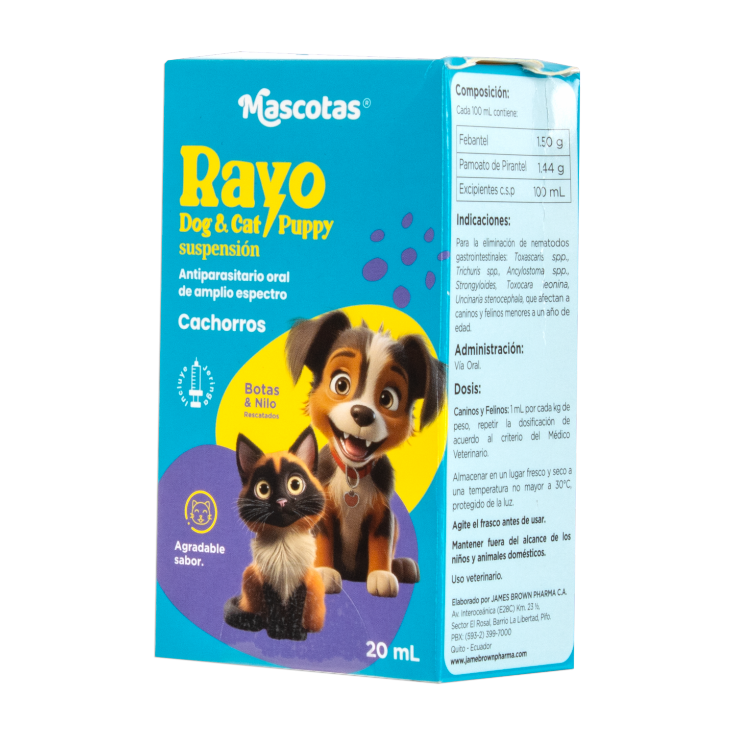 - Rayo Dog Presenta Su Antiparasitario Puppy, Una Solución Especialmente Diseñada Para Cachorros De Perros Y Gatos. Este Tratamiento En Un Envase De 20 Ml Ofrece Una Defensa Efectiva Contra Pulgas, Garrapatas Y Otros Parásitos Externos, Asegurando El Bienestar De Las Mascotas Más Jóvenes