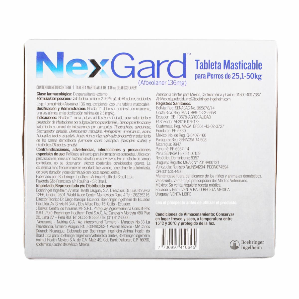 • El antiparasitario para perros en tableta masticable NexGard en la presentación "Extra Small" con 6 gramos es un producto diseñado para proteger a los perros pequeños de parásitos externos, como pulgas y garrapatas