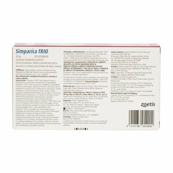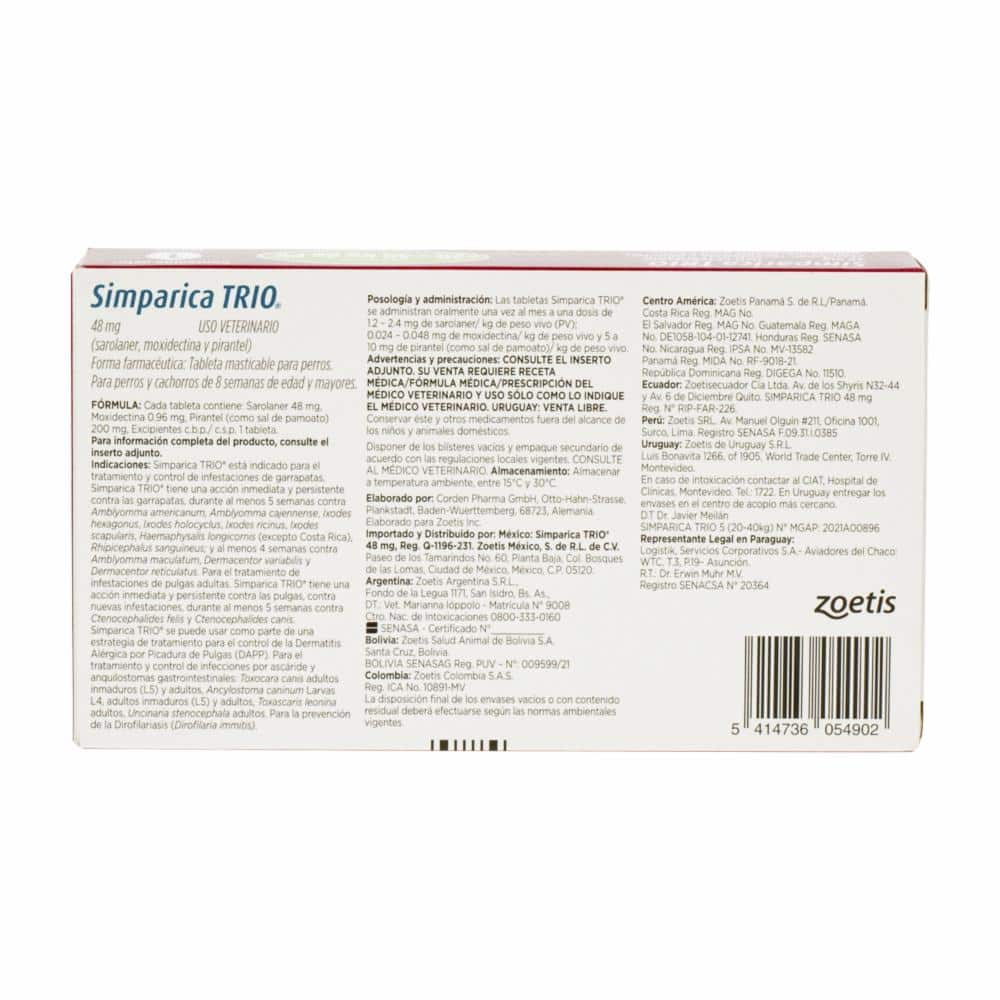 Antiparasitario Para Perros Interno Y Externo Trio 20 A 40 Kg SIMPARICA De 20 Kg A 40 Kg