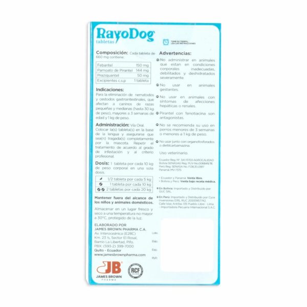 Antiparasitario Para Perros Pequeños Y Mediano RAYO DOG X 4 Uds
