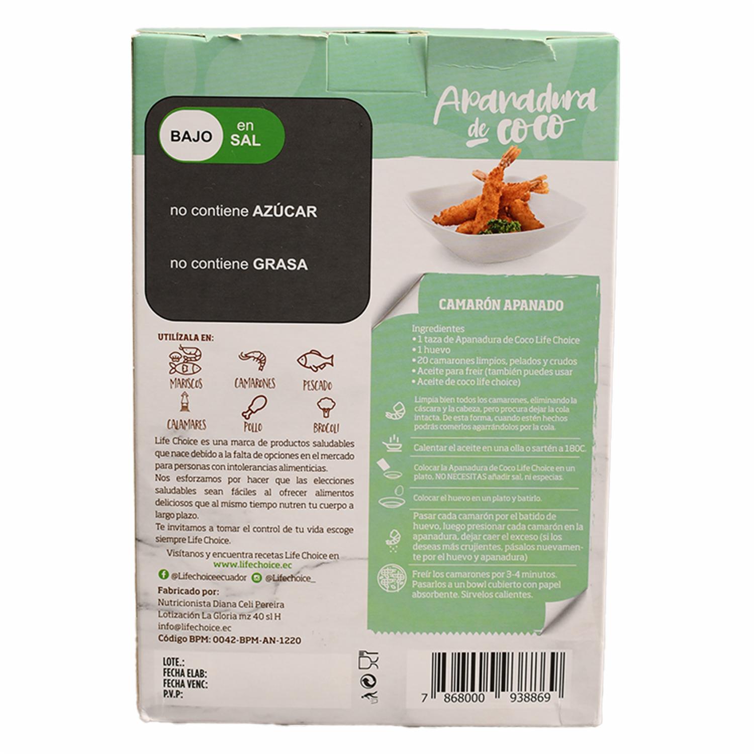 Apanadura De Coco Sin Glúten LIFE CHOICE 240 G – LIFE CHOICE. Disponible en nuestros locales. Precio y stock pueden variar según la tienda.