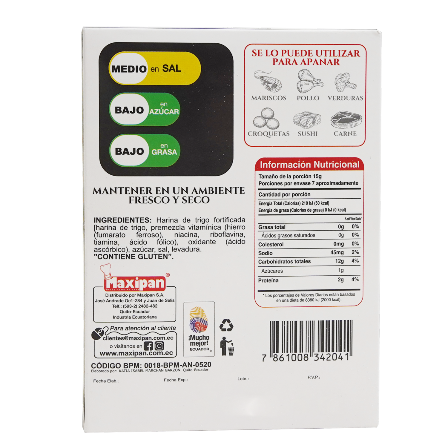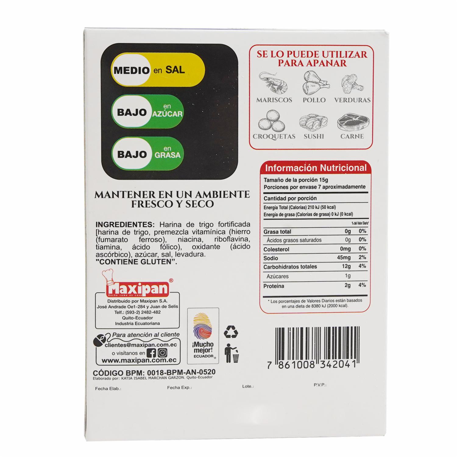 - Apanadura de corte grueso, ideal para cocción y absorción de los sabores y condimentos empleados en el platillo a preparar