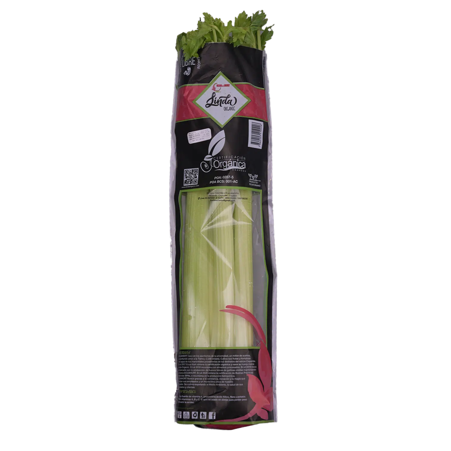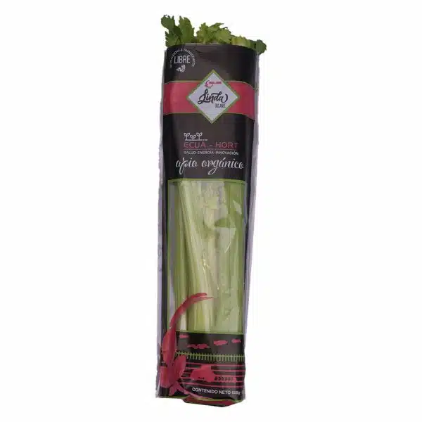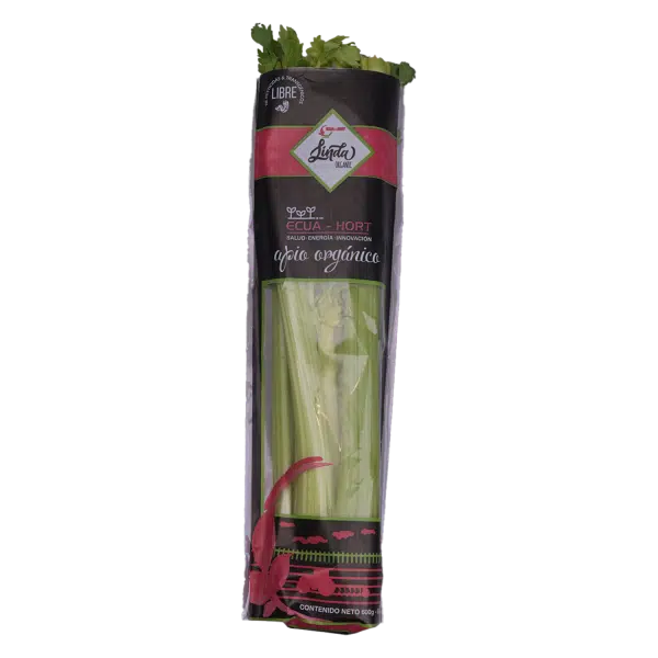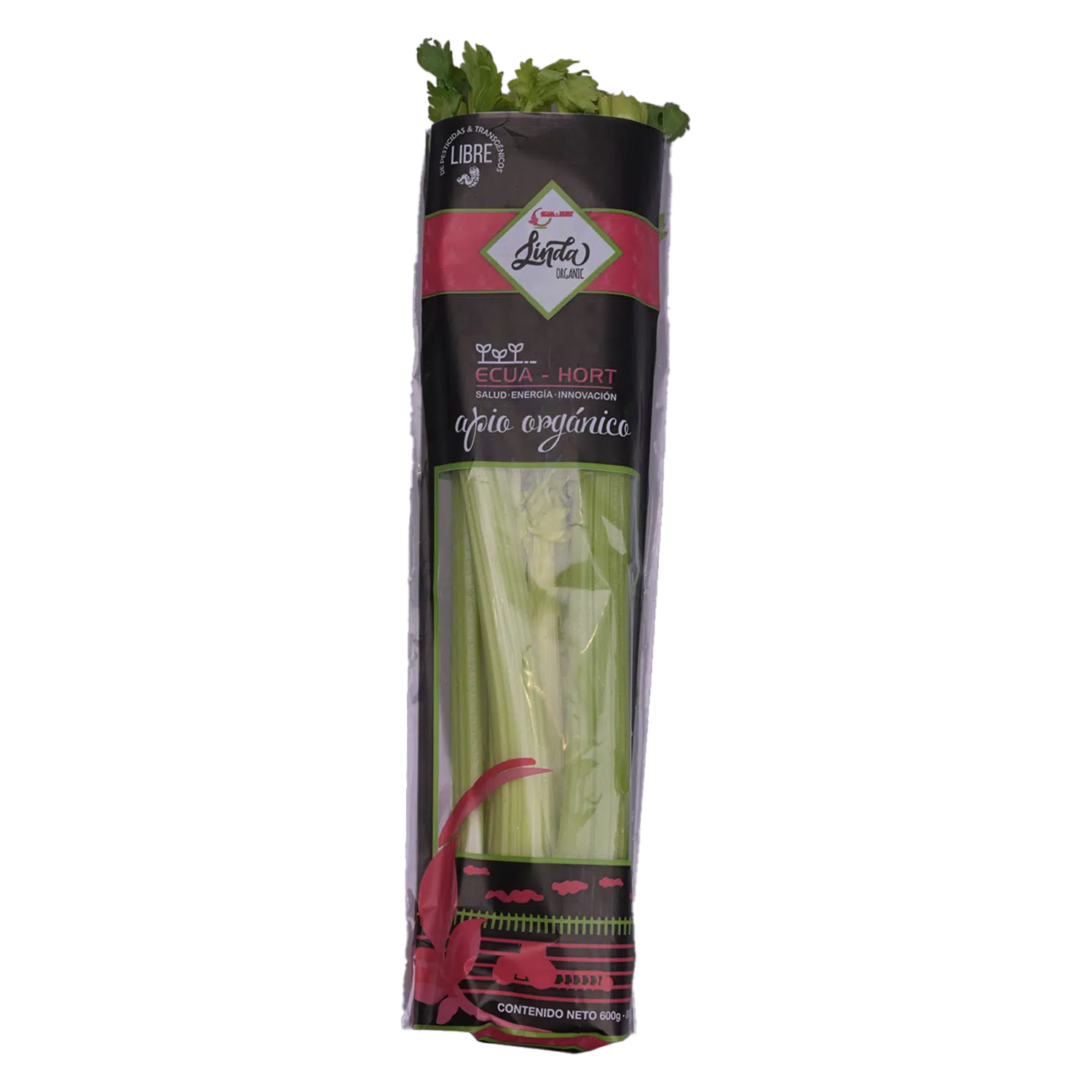 • Es un producto orgánico, lo que significa que se cultiva sin el uso de pesticidas y fertilizantes químicos. - El apio es una fuente rica en vitaminas y minerales, como la vitamina K, ácido fólico, potasio y fibra. - Tiene propiedades antiinflamatorias y antioxidantes, lo que lo hace beneficioso para la salud cardiovascular y la prevención del cáncer