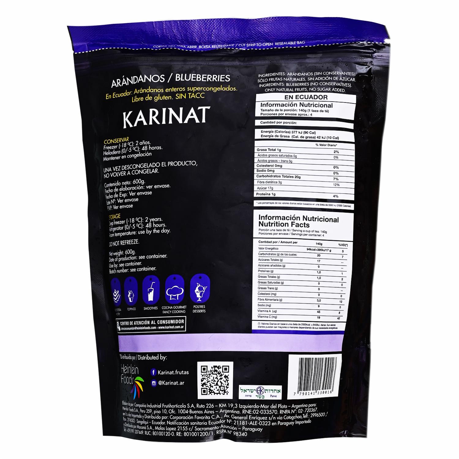 Arándanos Congelados KARINAT 600 G – KARINAT. Disponible en nuestros locales. Precio y stock pueden variar según la tienda.