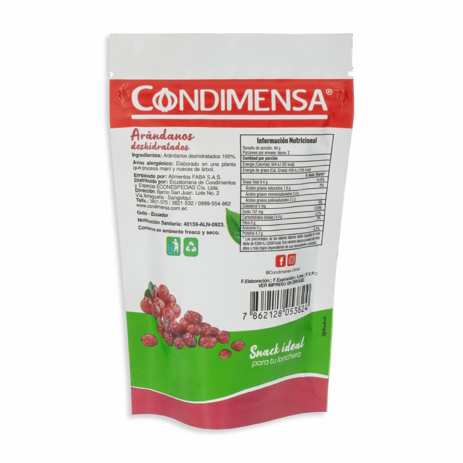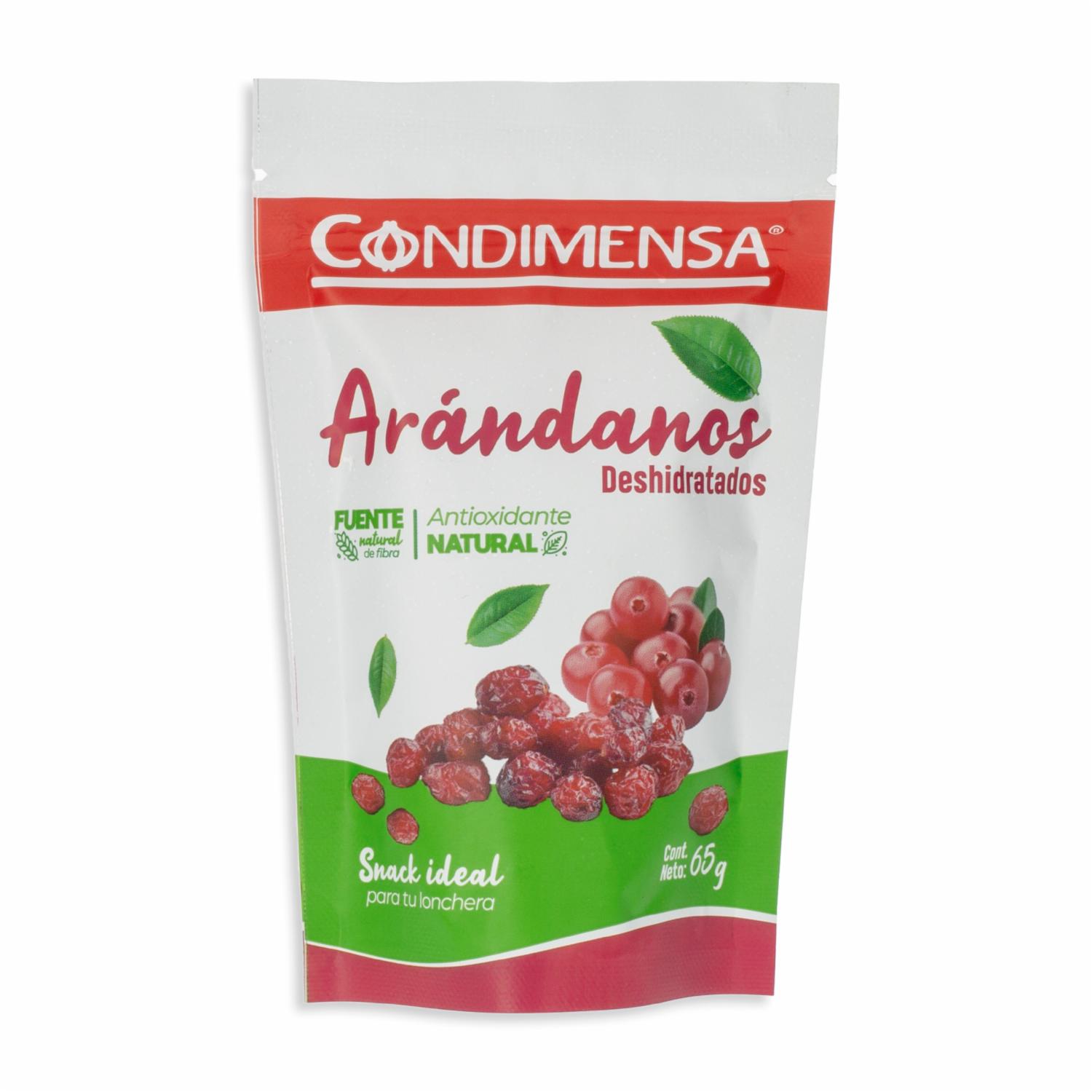 - Disfruta de la frescura y el sabor auténtico de los arándanos naturales CONDIMENSA. Este práctico paquete de 65 g es perfecto para aquellos que buscan un snack saludable y lleno de antioxidantes. Ideales para disfrutar solos, añadir a tus yogures o incorporar en batidos y ensaladas