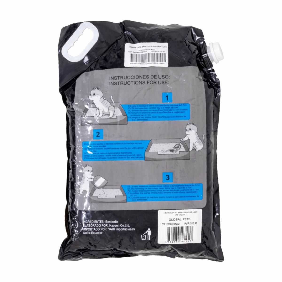 - La arena para gatos con fragancia a limón de Easy Clean contiene microesporas que atrapan y controlan el mal olor