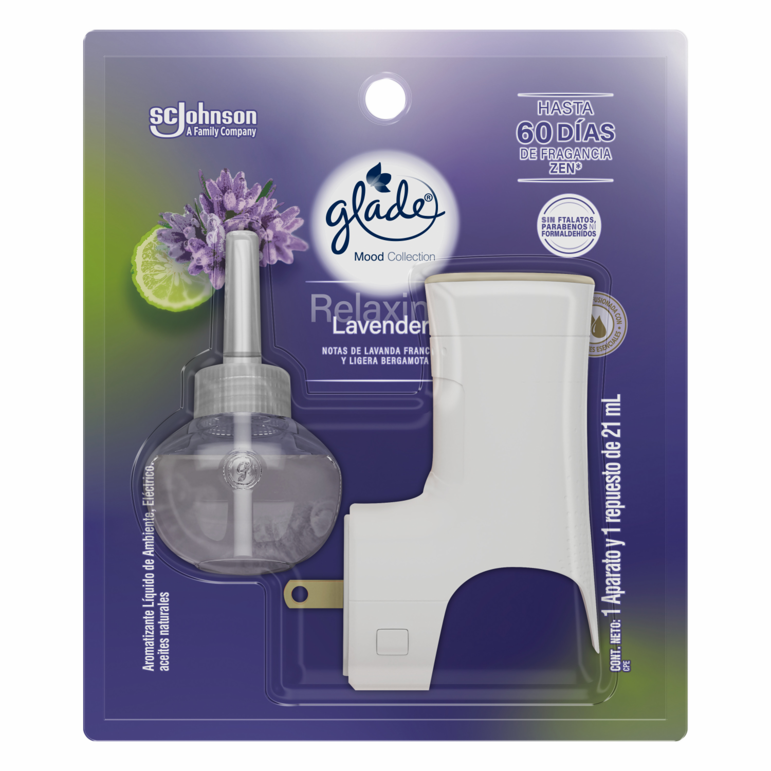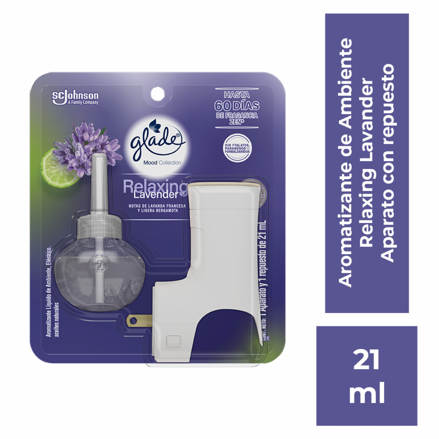 Aromatizante de Ambiente En Aceite Con Aparato Eléctrico Fragancia Lavanda Relajante GLADE 21 Ml