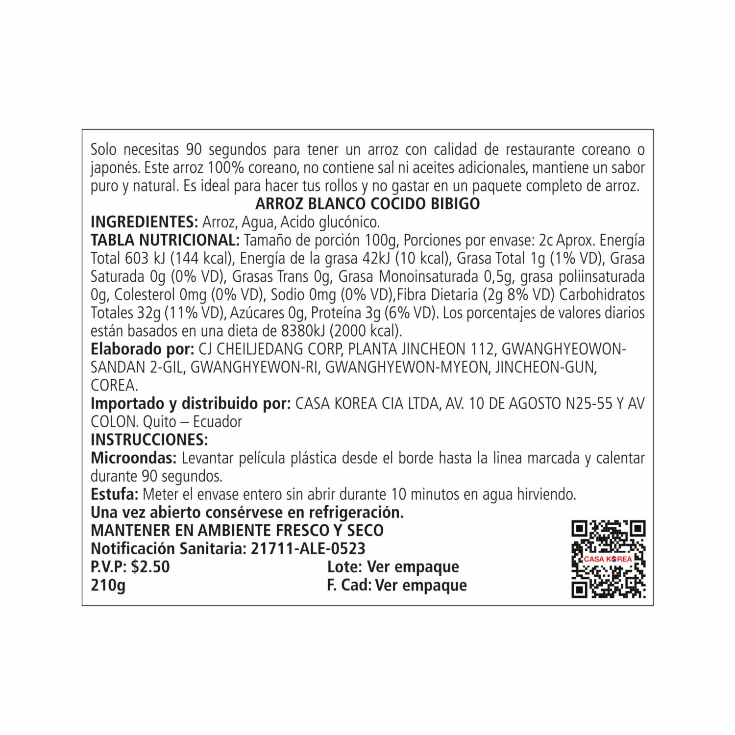 - Bibigo Arroz al Vapor (pre cocido), listo en 90 segundos