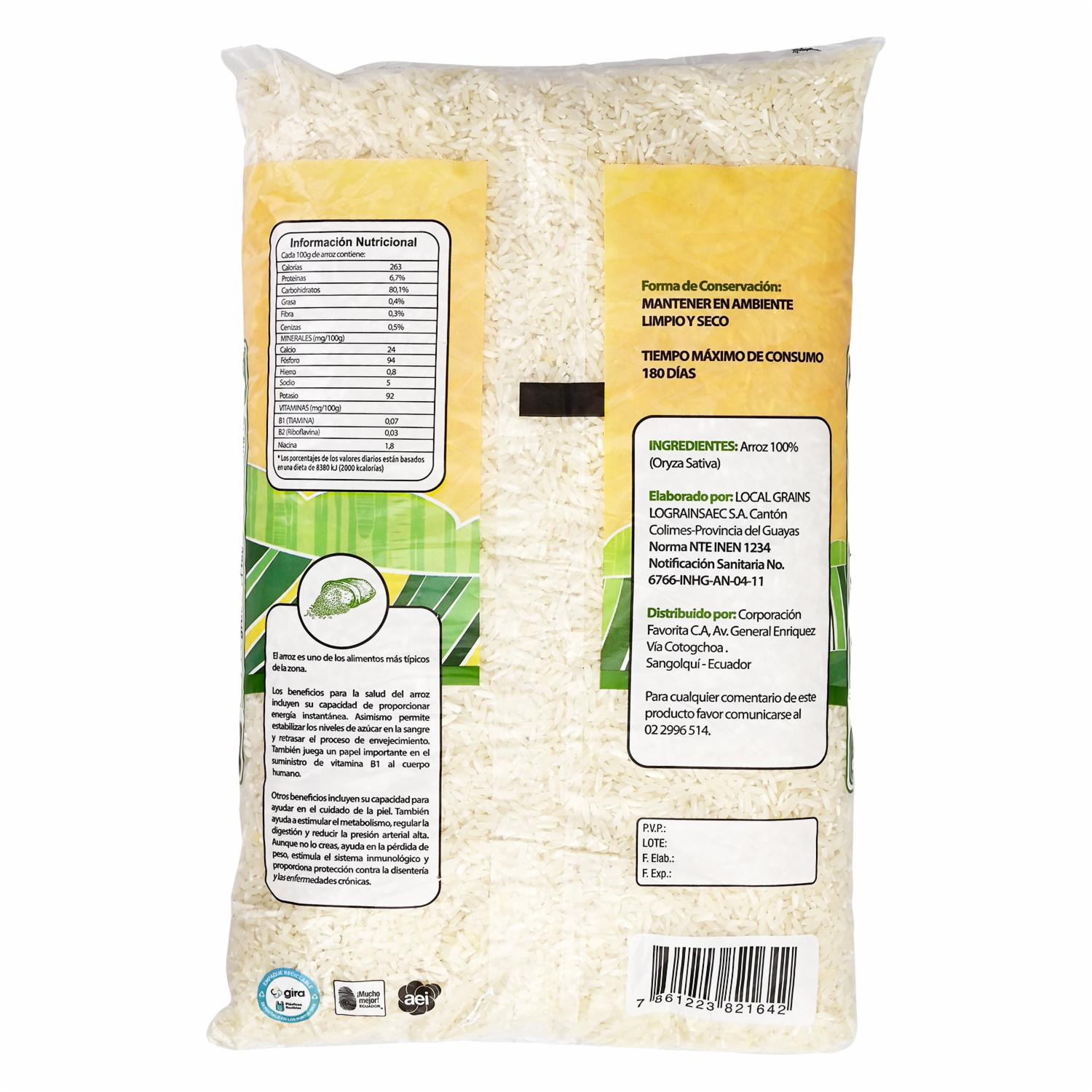 - Granos seleccionados y envejecidos que garantizan una cocción suelta y uniforme.
