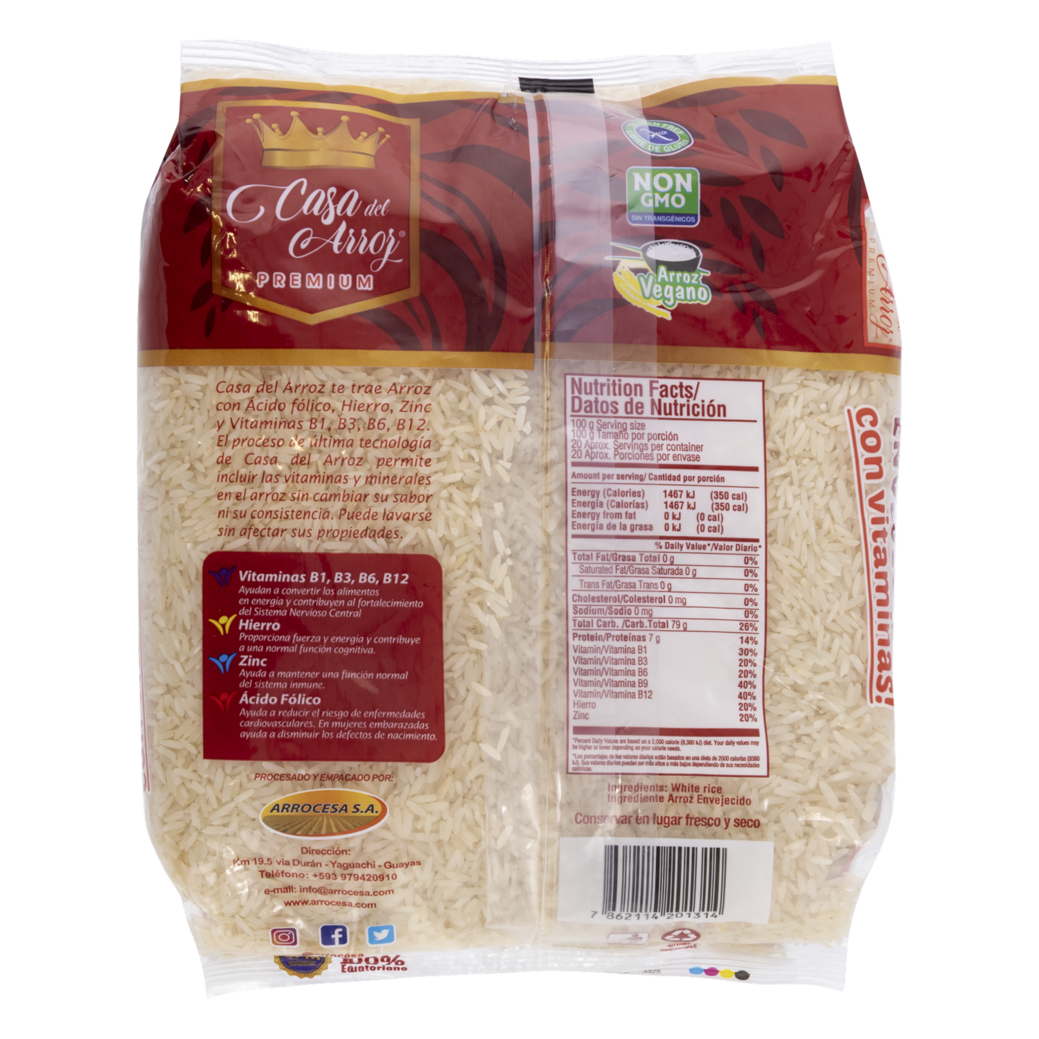 - Arroz blanco envejecido de grano largo que garantiza una cocción uniforme y un resultado siempre suelto. Fortificado para aportar mayor valor nutricional a tus comidas diarias. Ideal para acompañar platos tradicionales, guarniciones y recetas caseras