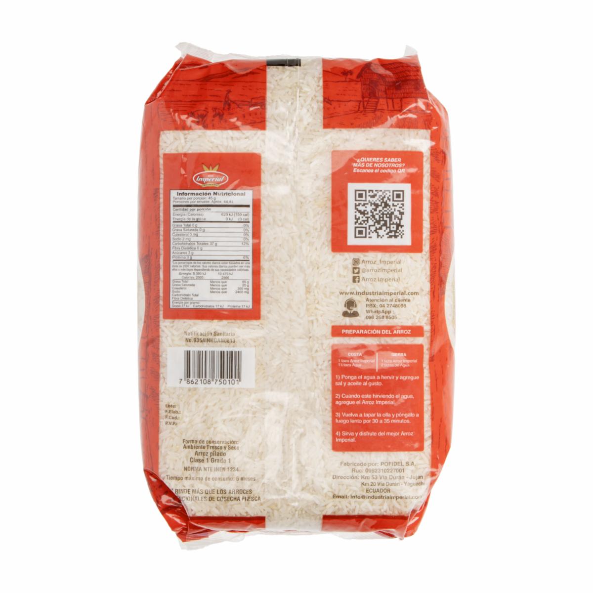 - ARROZ IMPERIAL ¡un poema de arroz! Disfruta de la calidad superior del arroz premium imperial, presentado en una bolsa de 2000 g