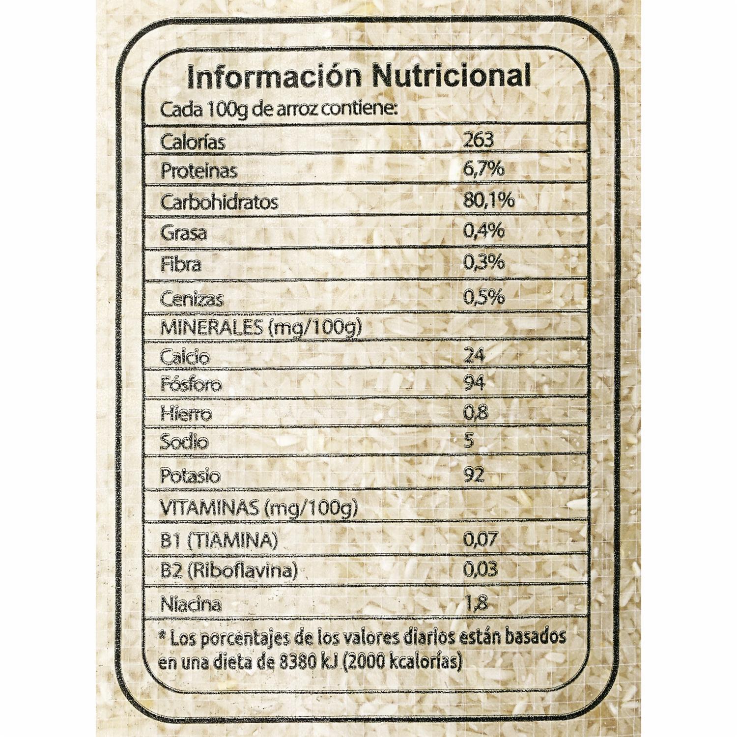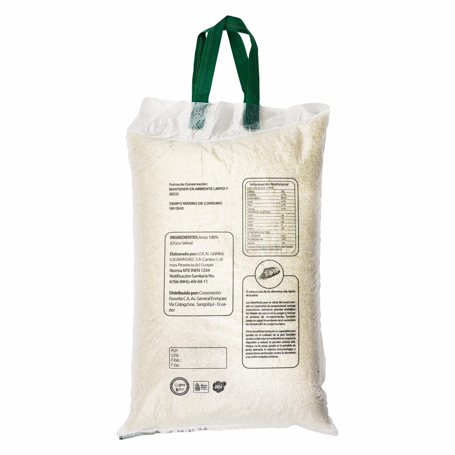 - Arroz pilado natural de grano entero, ideal para una alimentación tradicional y balanceada.