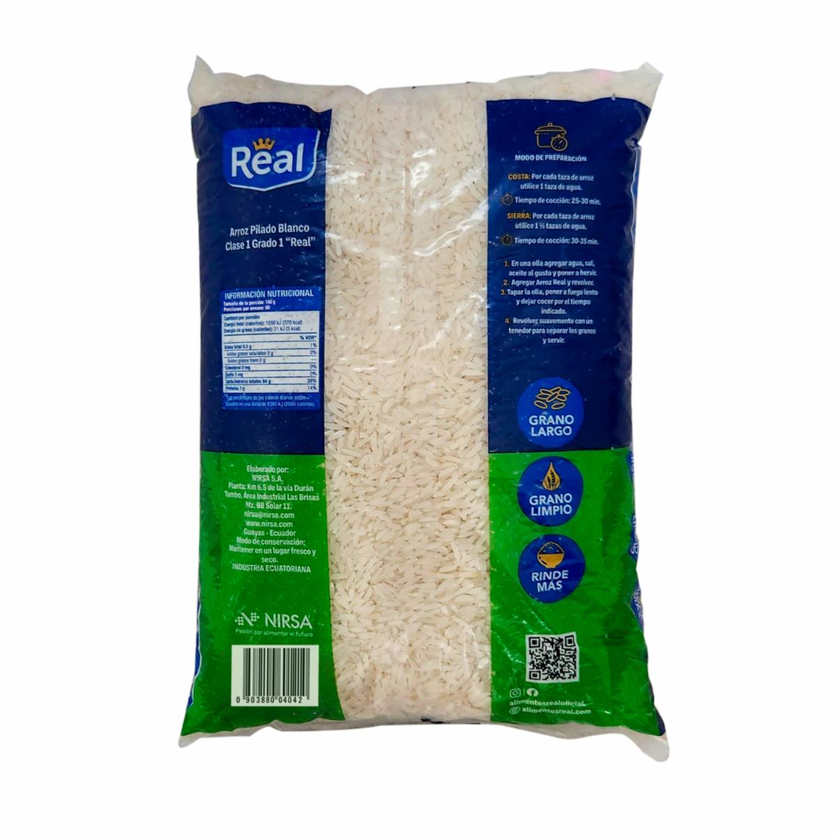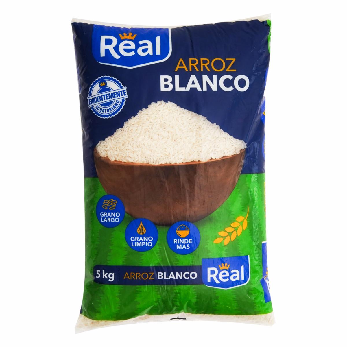 - Arroz blanco Real, rinde más, grano limpio y largo. Producto Ecuatoriano