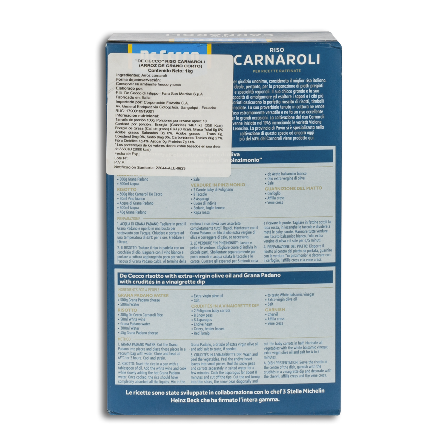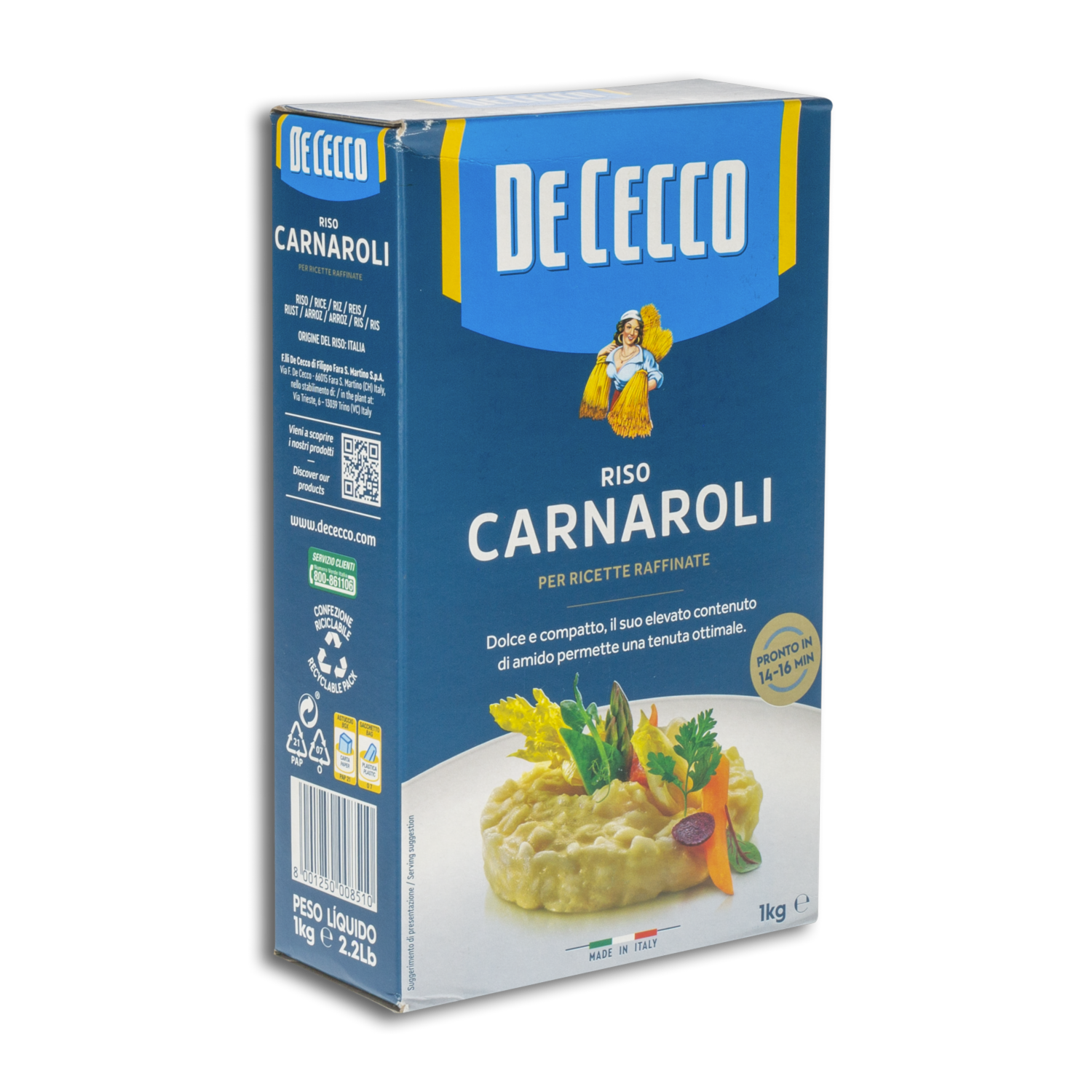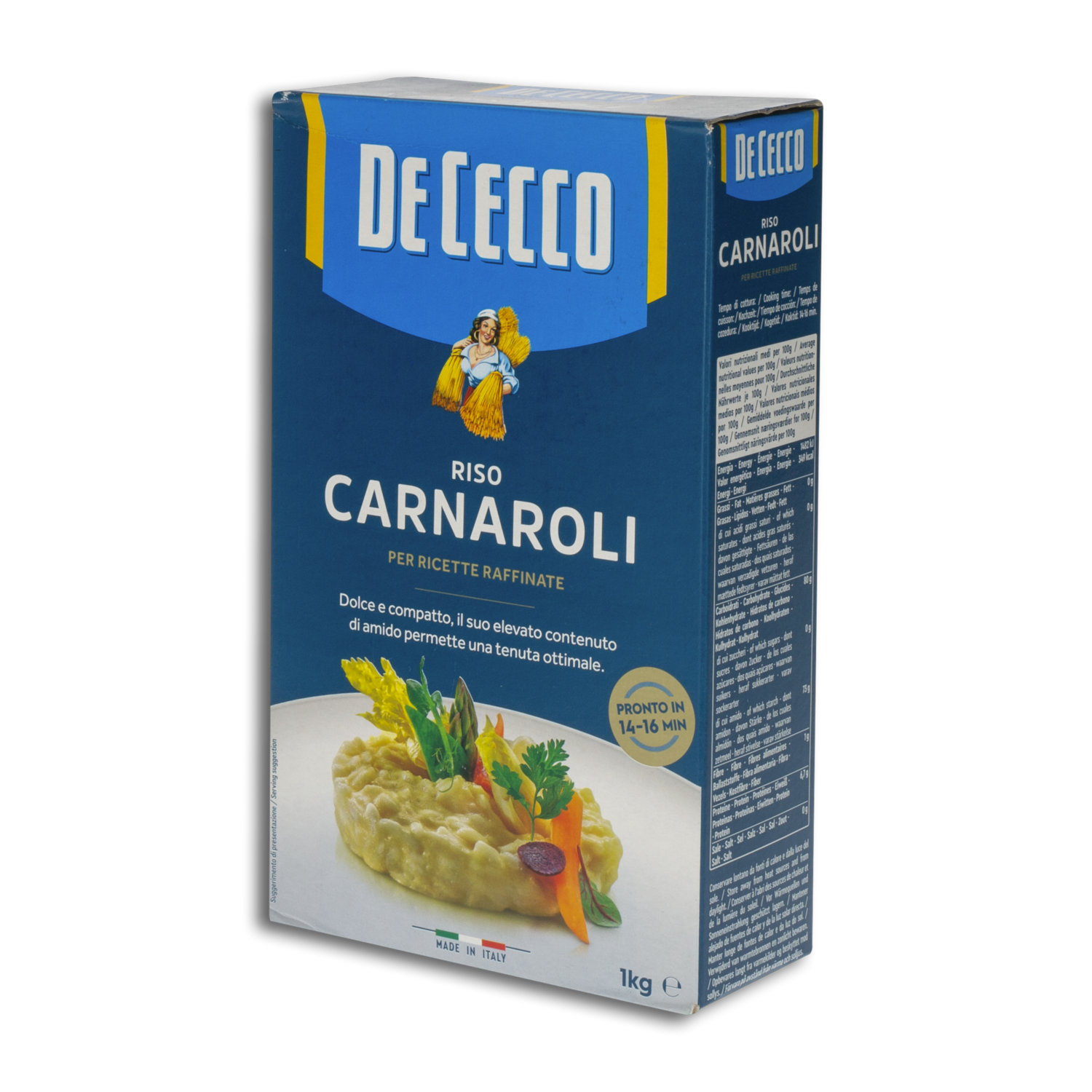 - Descubre el arroz especial Carnaroli DE CECCO, la elección definitiva para preparar risottos de calidad profesional y otros platos gourmet. Con su textura superior y su capacidad para absorber sabores, este arroz se convierte en el ingrediente ideal para tus creaciones culinarias más sofisticadas