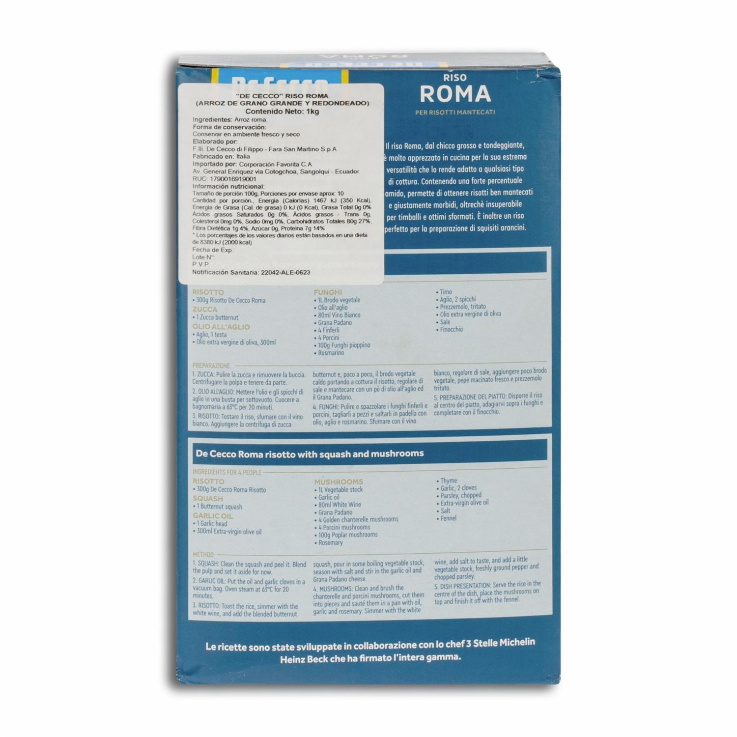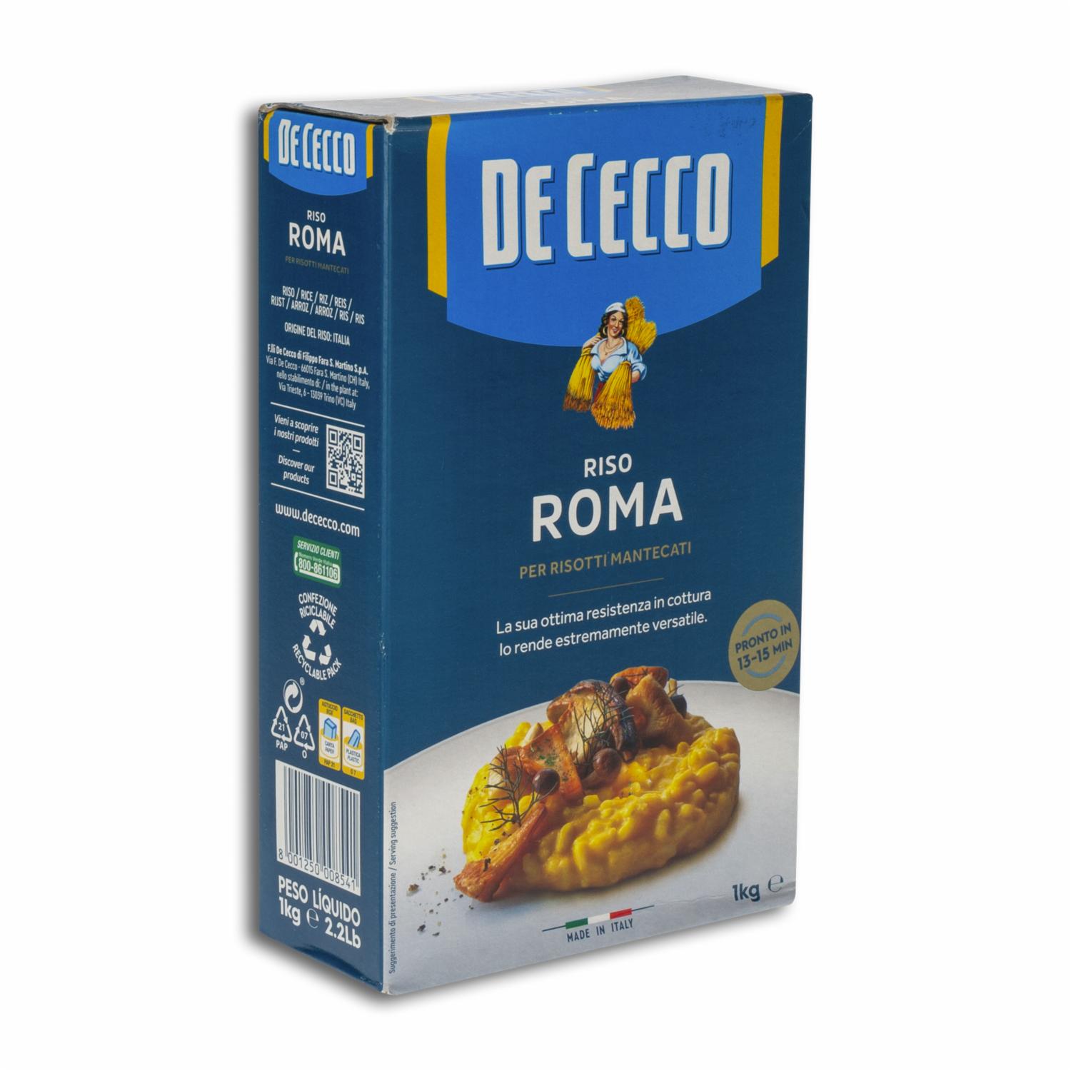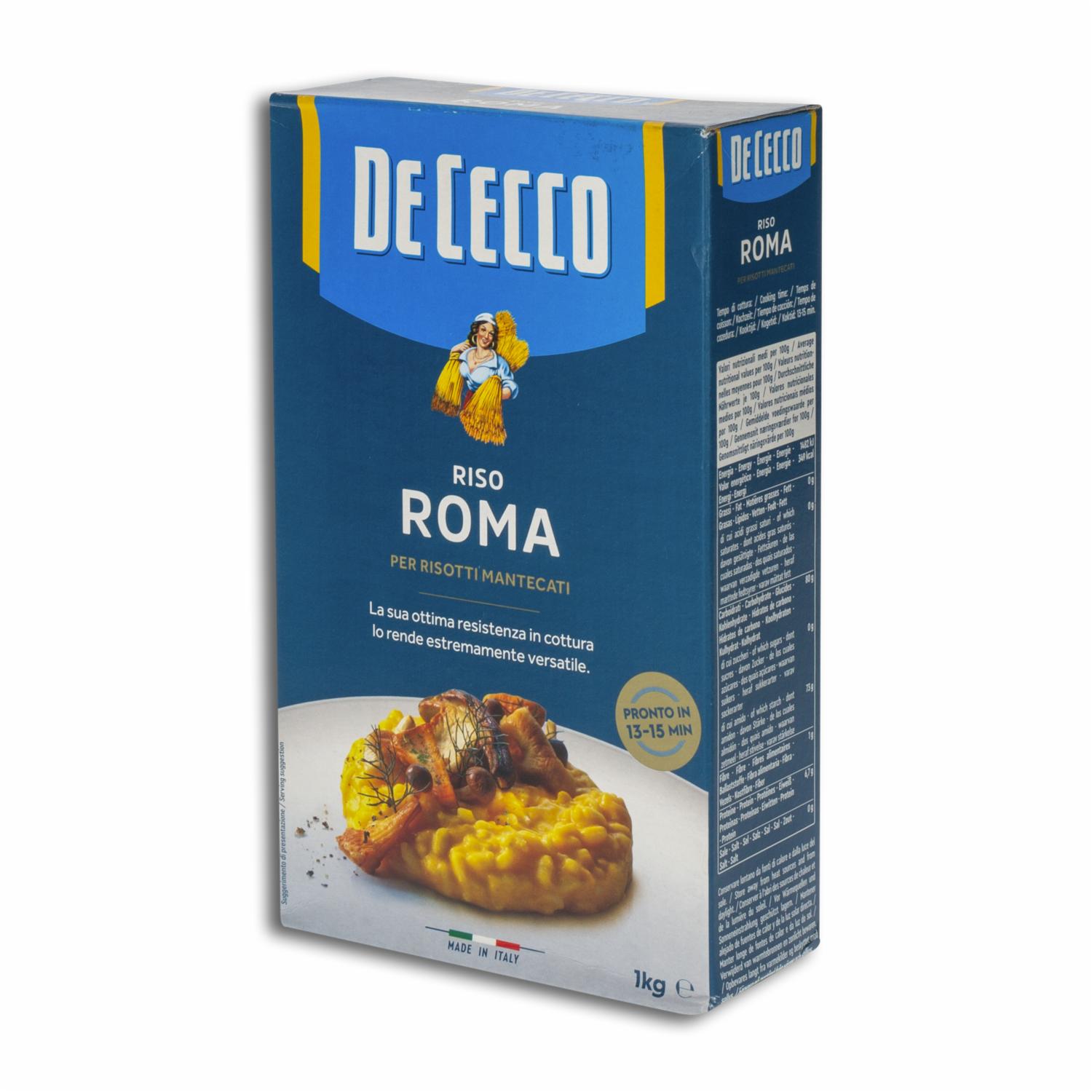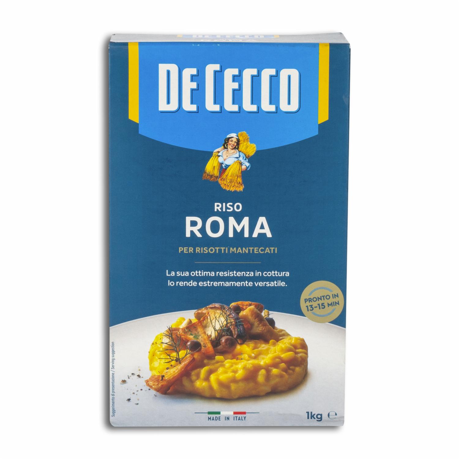 - Eleva tus platillos con el arroz especial Riso Roma DE CECCO, la elección perfecta para preparar risottos, arroces y platos gourmet con una textura y sabor excepcionales. Este arroz, conocido por su calidad superior y su capacidad para absorber sabores, te permitirá crear comidas dignas de un chef