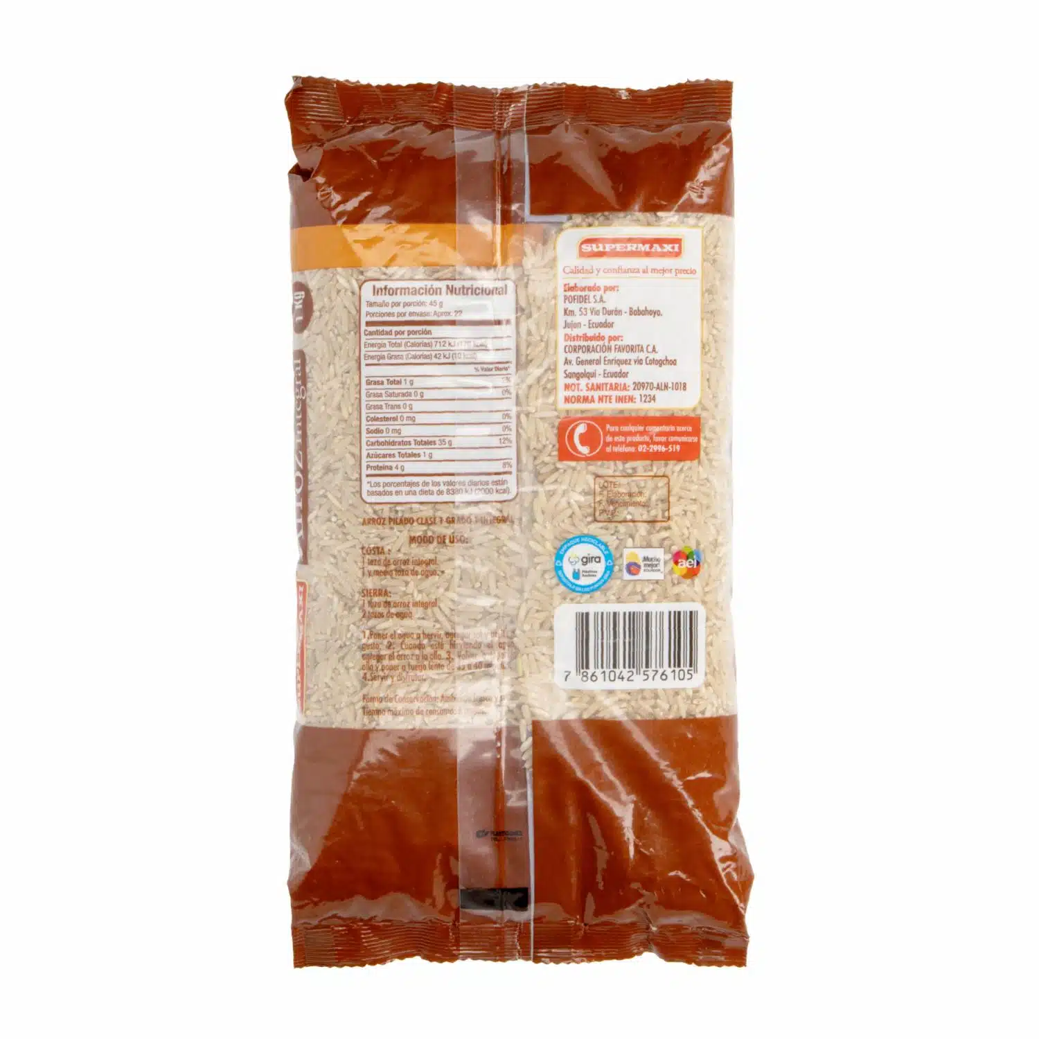 Arroz Integral 100% Natural Libre De Gluten SUPERMAXI 1 Kg – SUPERMAXI. Disponible en nuestros locales. Precio y stock pueden variar según la tienda.