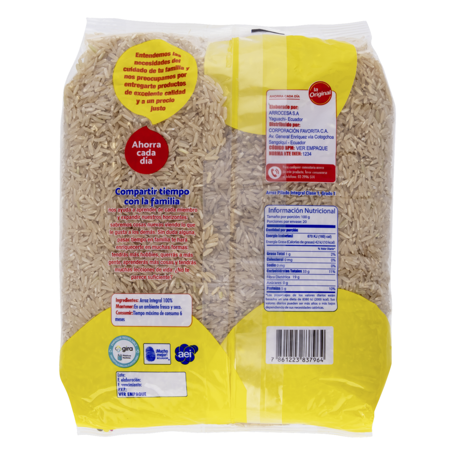 - Arroz integral libre de gluten de alta calidad, ideal para una alimentación saludable y balanceada. Rico en fibra y nutrientes esenciales, perfecto como acompañamiento o base para tus comidas diarias. Presentación de 2000 g, ideal para el hogar