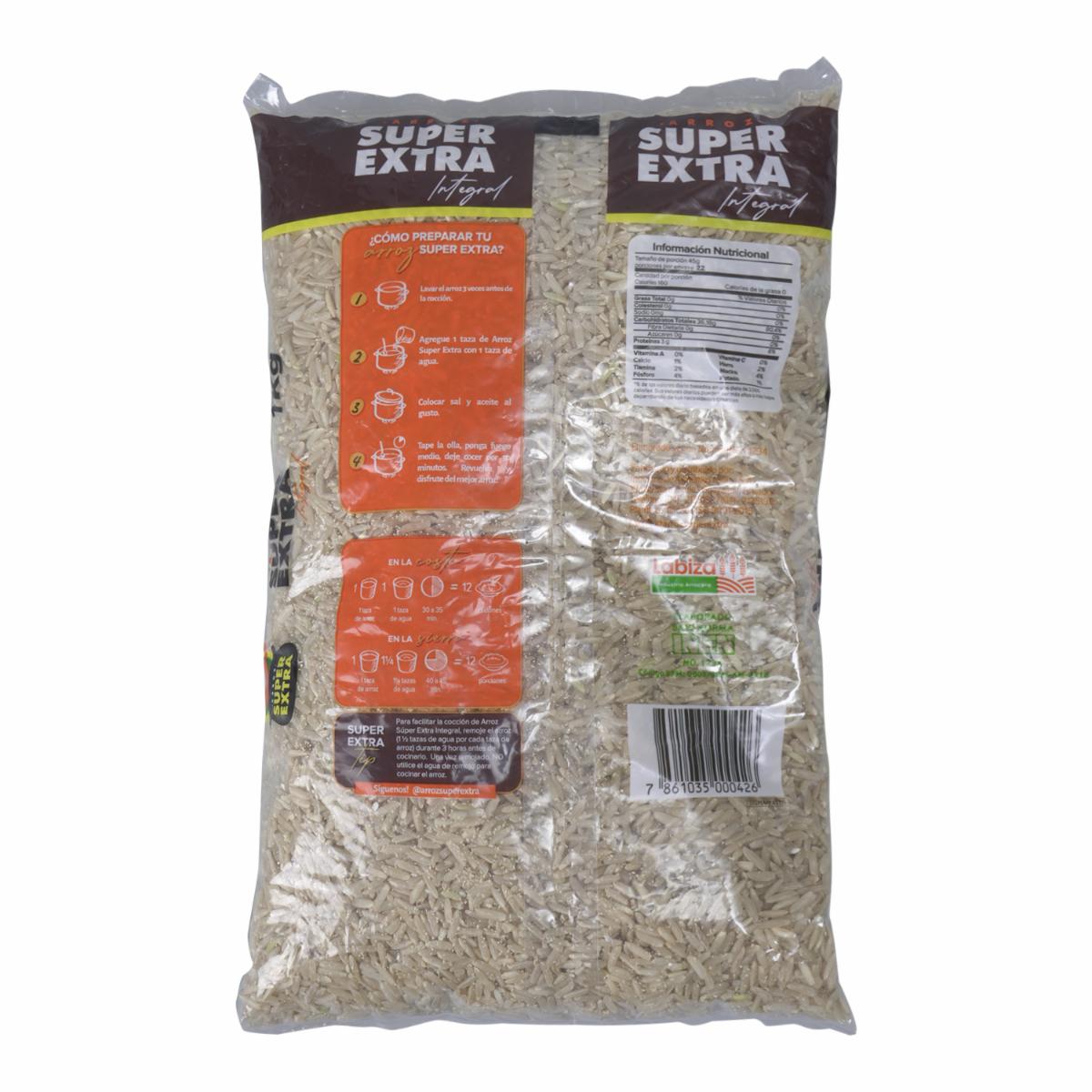 Arroz Integral SUPER EXTRA Funda – SUPER EXTRA. Disponible en nuestros locales. Precio y stock pueden variar según la tienda.