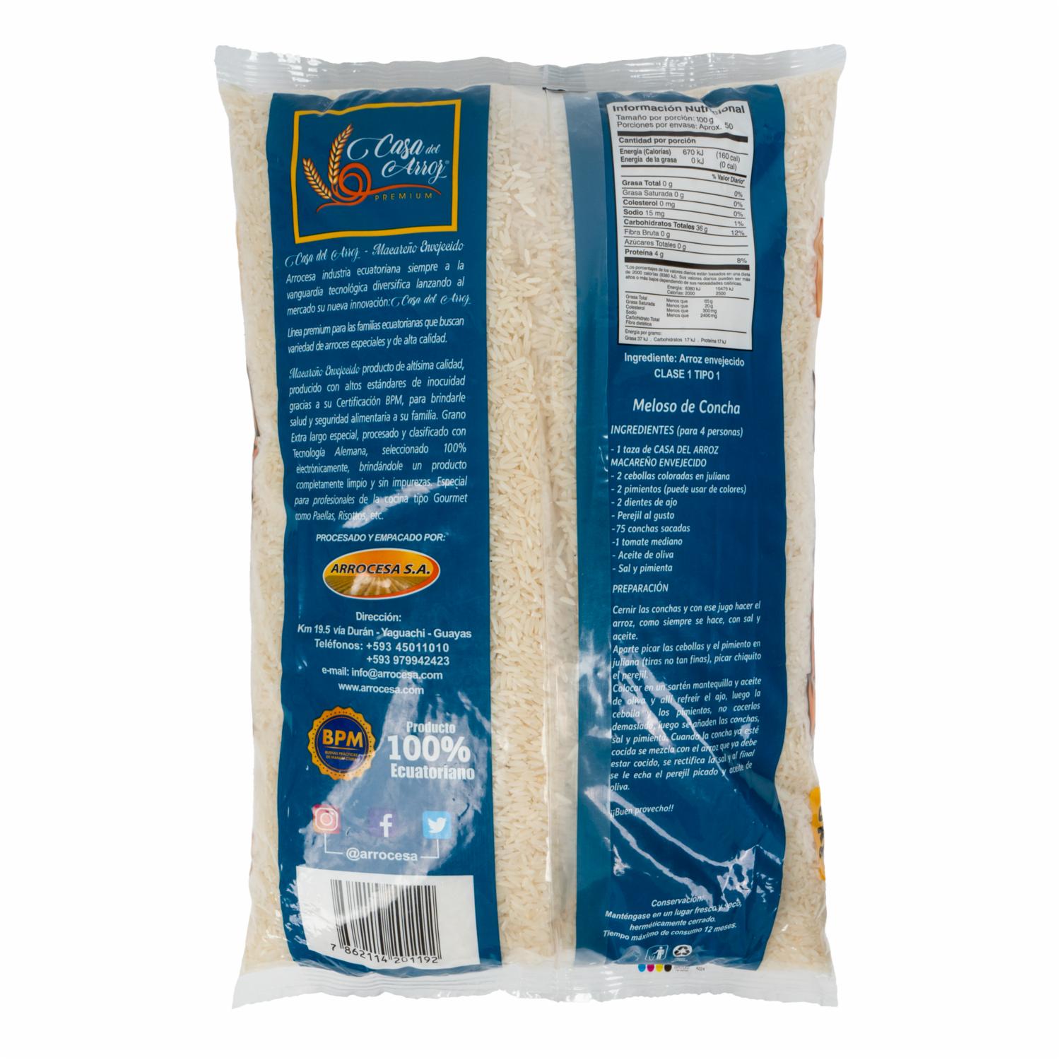 Arroz Macareño Envejecido LA CASA DEL ARROZ 5000 G