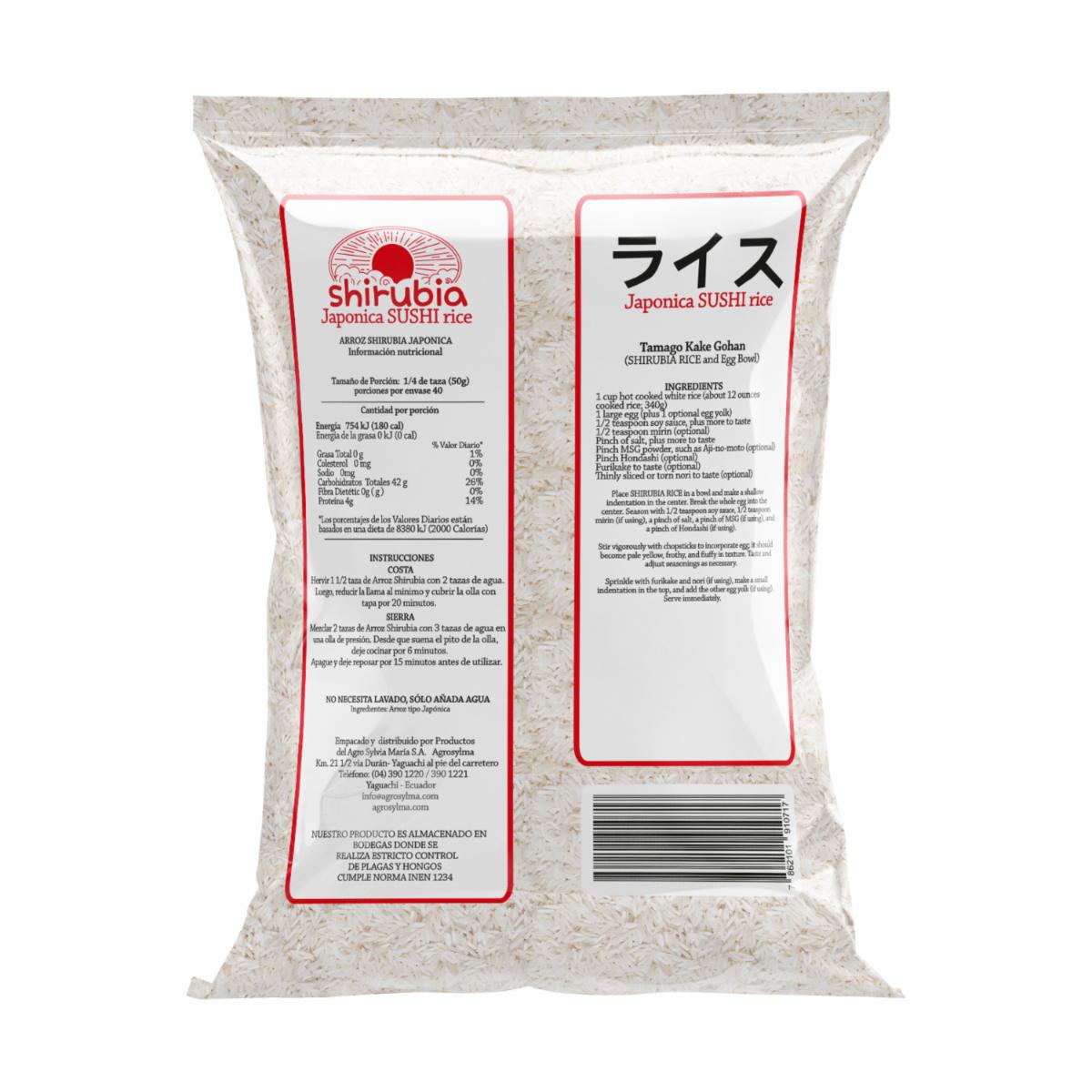 - El "Arroz para Sushi" de la marca SHIRUBIA es un tipo de arroz especialmente seleccionado y preparado para la elaboración de sushi, un plato tradicional de la cocina japonesa. Este tipo de arroz es fundamental para lograr la textura y consistencia adecuadas para el sushi