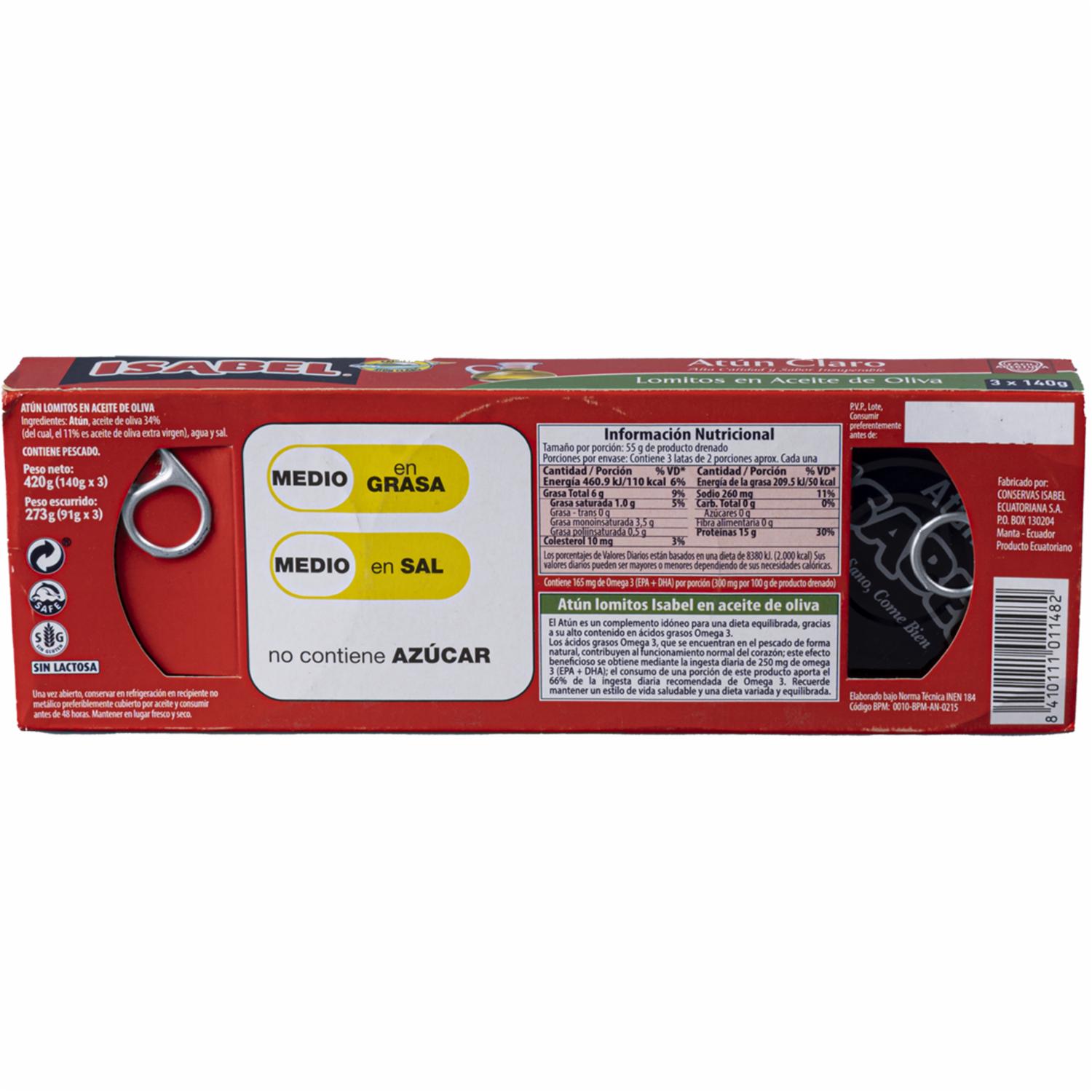 Atún Claro Lomitos En Aceite De Oliva ISABEL 3 X 140 G