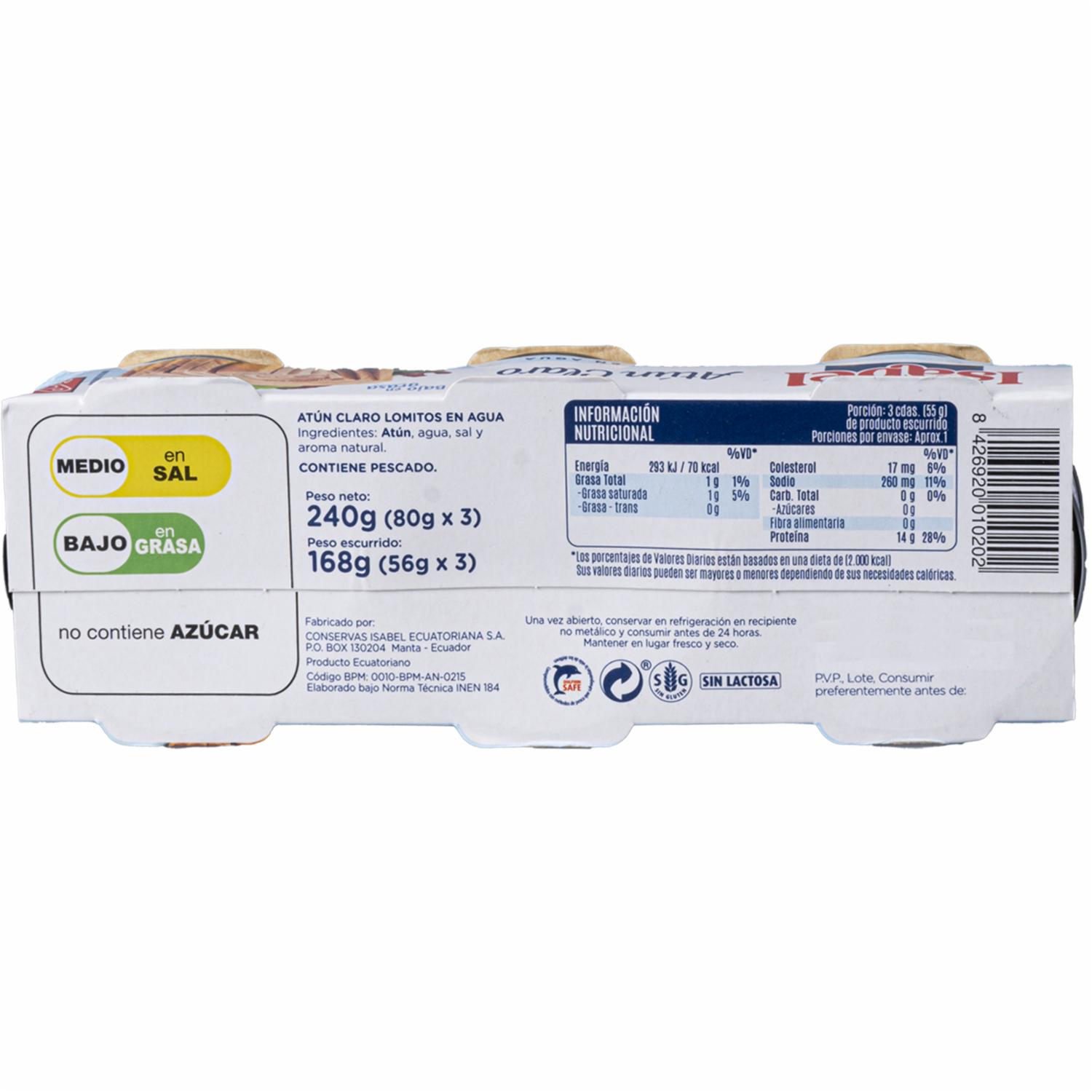 Atún En Agua Abre Fácil ISABEL 240 G – ISABEL. Disponible en nuestros locales. Precio y stock pueden variar según la tienda.