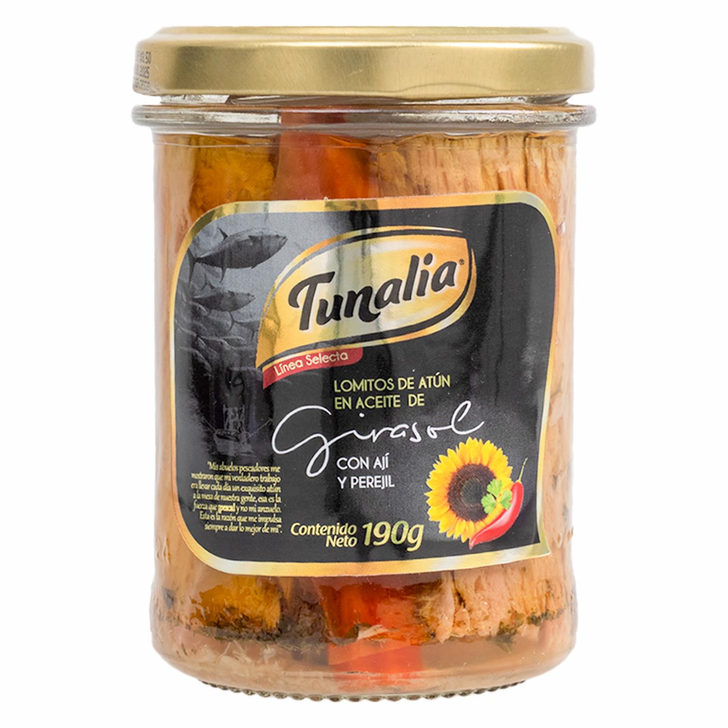 Atún Gourmet Ají Perejil TUNALIA 190 g – TUNALIA. Disponible en nuestros locales. Precio y stock pueden variar según la tienda.