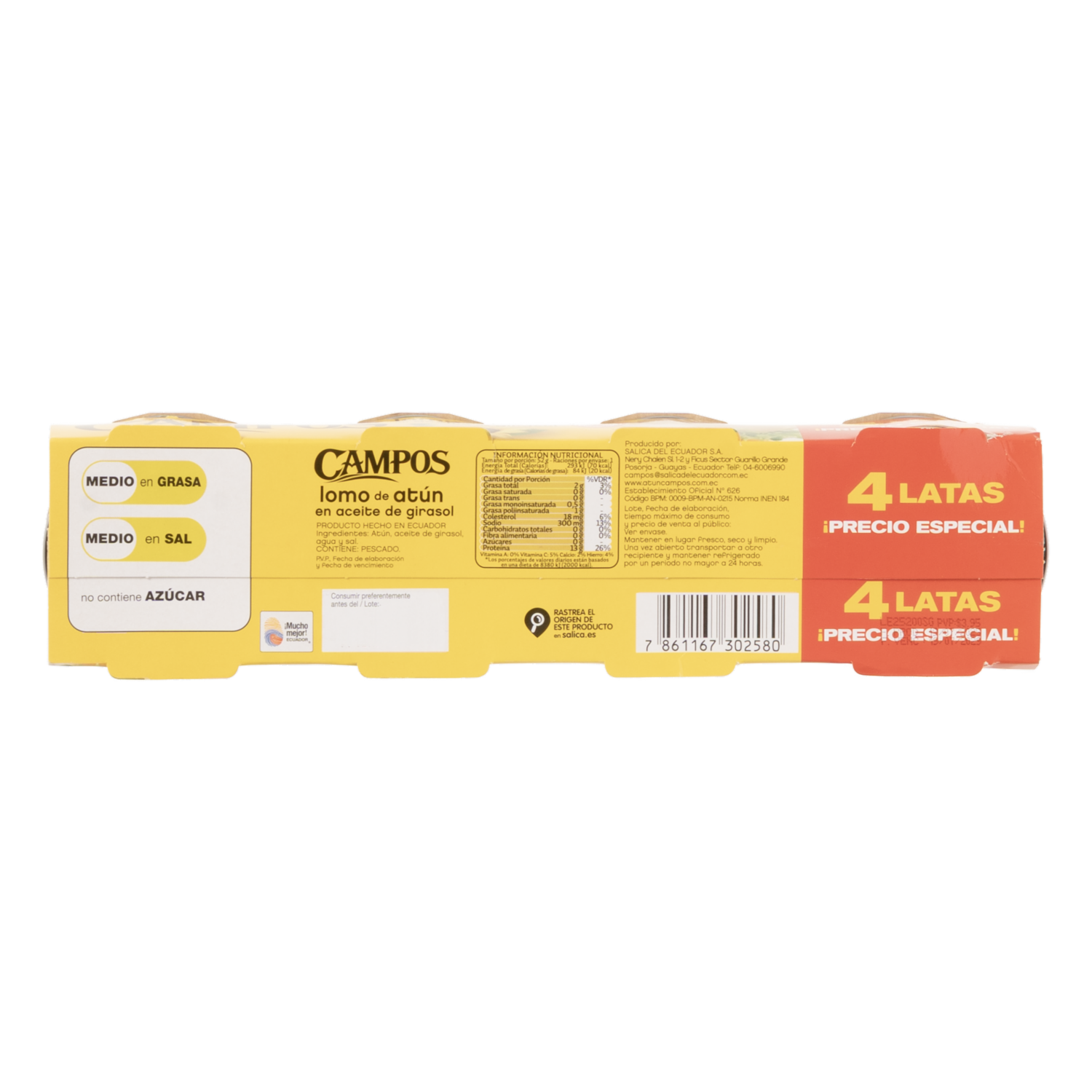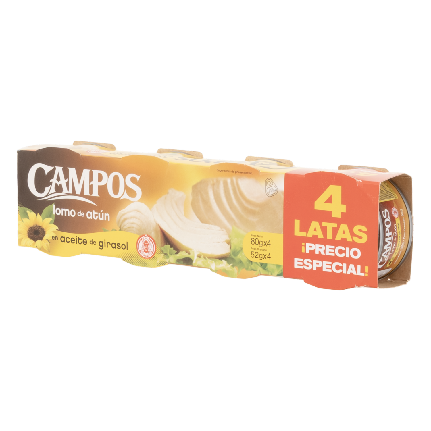 Atún Lomitos En Aceite De Girasol CAMPOS 4 X 80 G