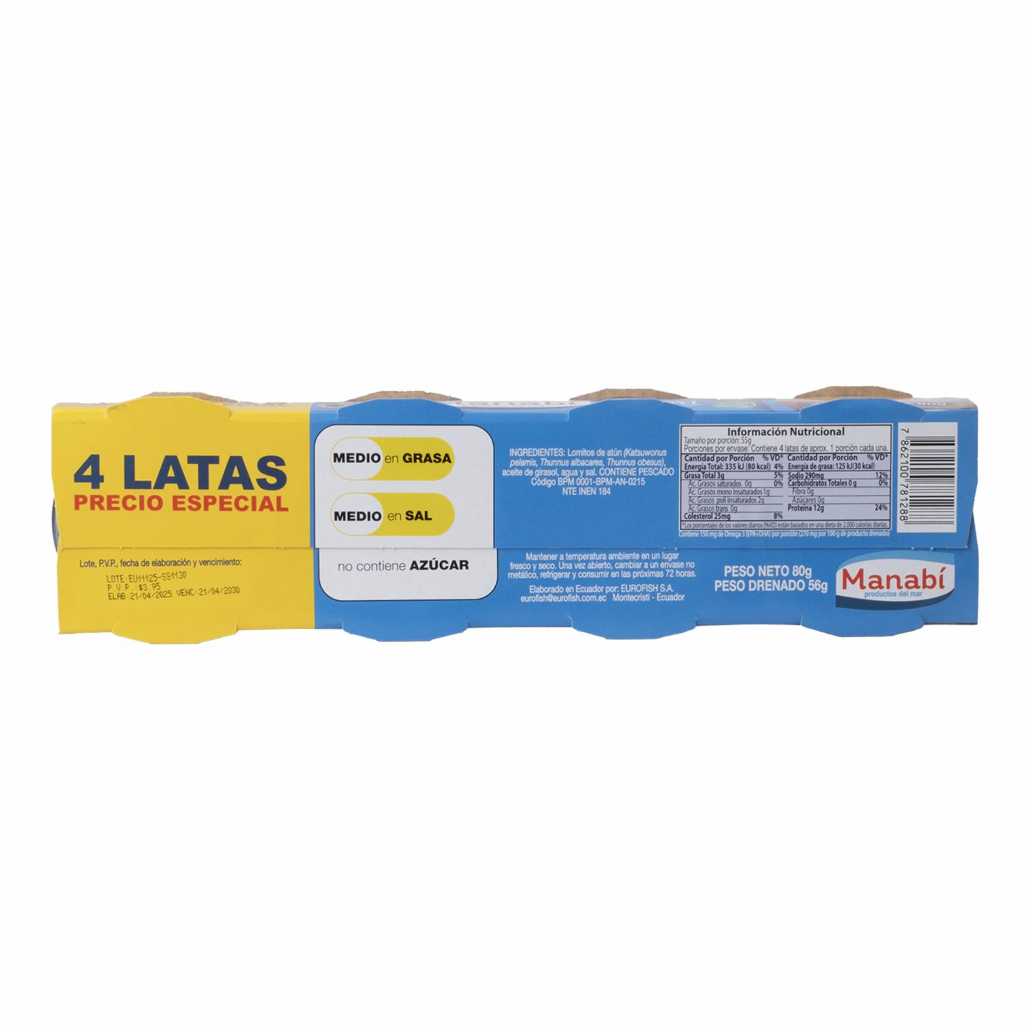 Atún Lomitos En Aceite De Girasol MANABÍ 4 X 80 G
