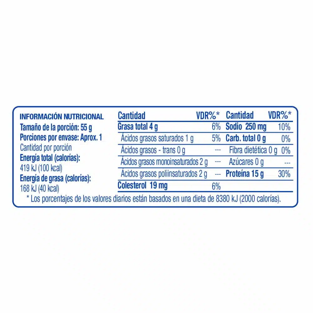 Muy rico en proteínas de alto valor biológico y en ácidos grasos Omega-3
