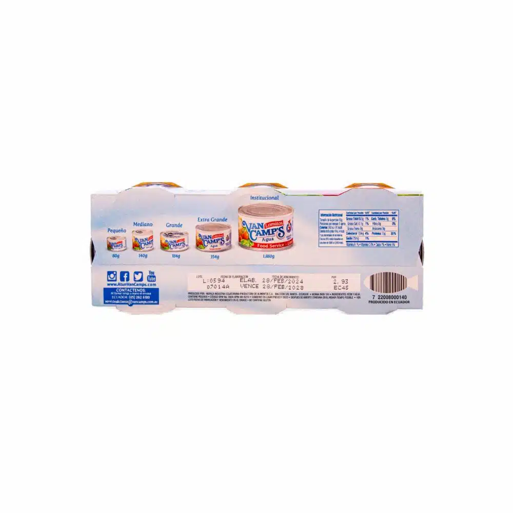 Atún Lomitos En Agua Light Con Abre Fácil VAN CAMP´S 3 X 80 G – VAN CAMP´S. Disponible en nuestros locales. Precio y stock pueden variar según la tienda.