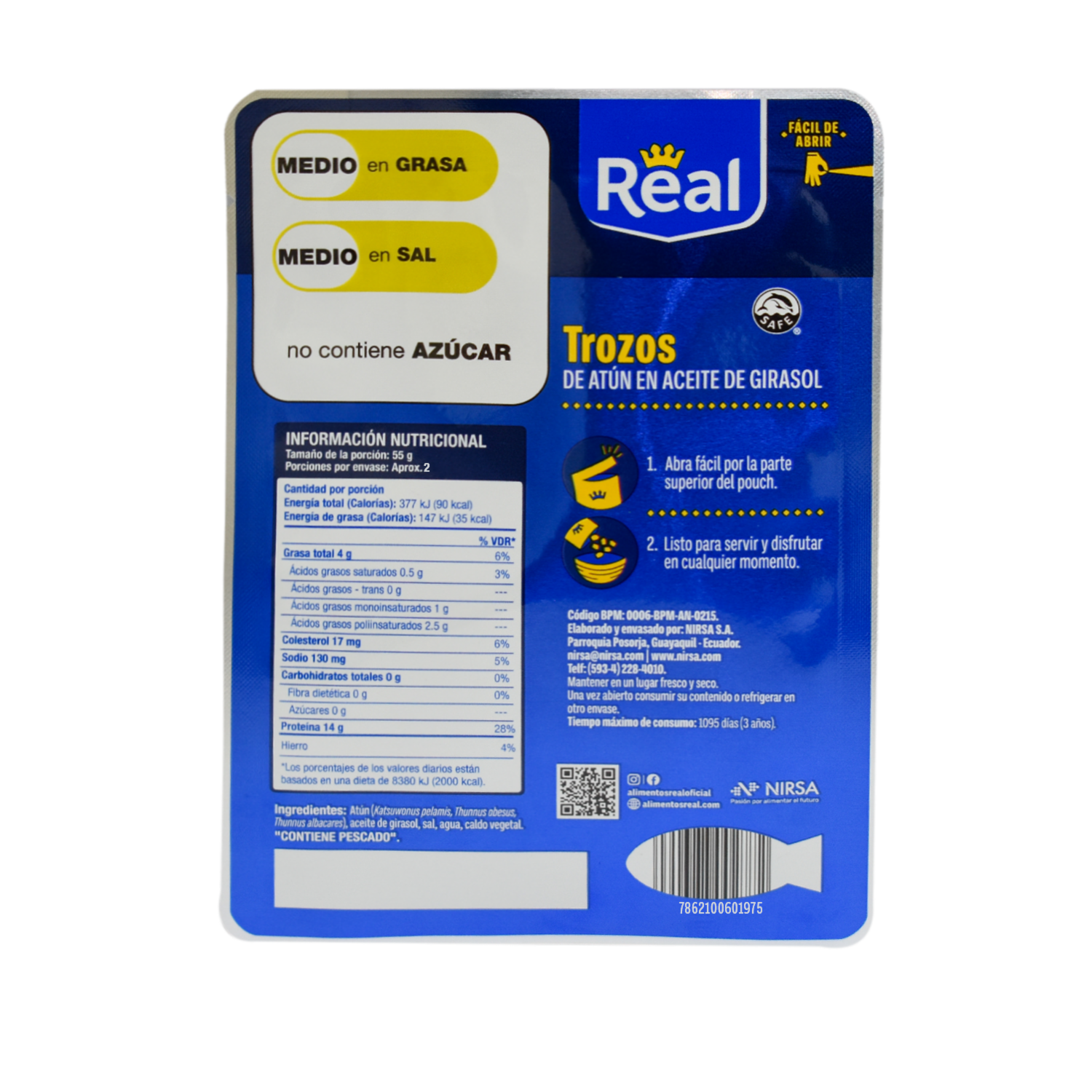 consultando preciosAtún Trozos En Aceite De Girasol REAL 120 G – REAL. Disponible en nuestros locales. Precio y stock pueden variar según la tienda.