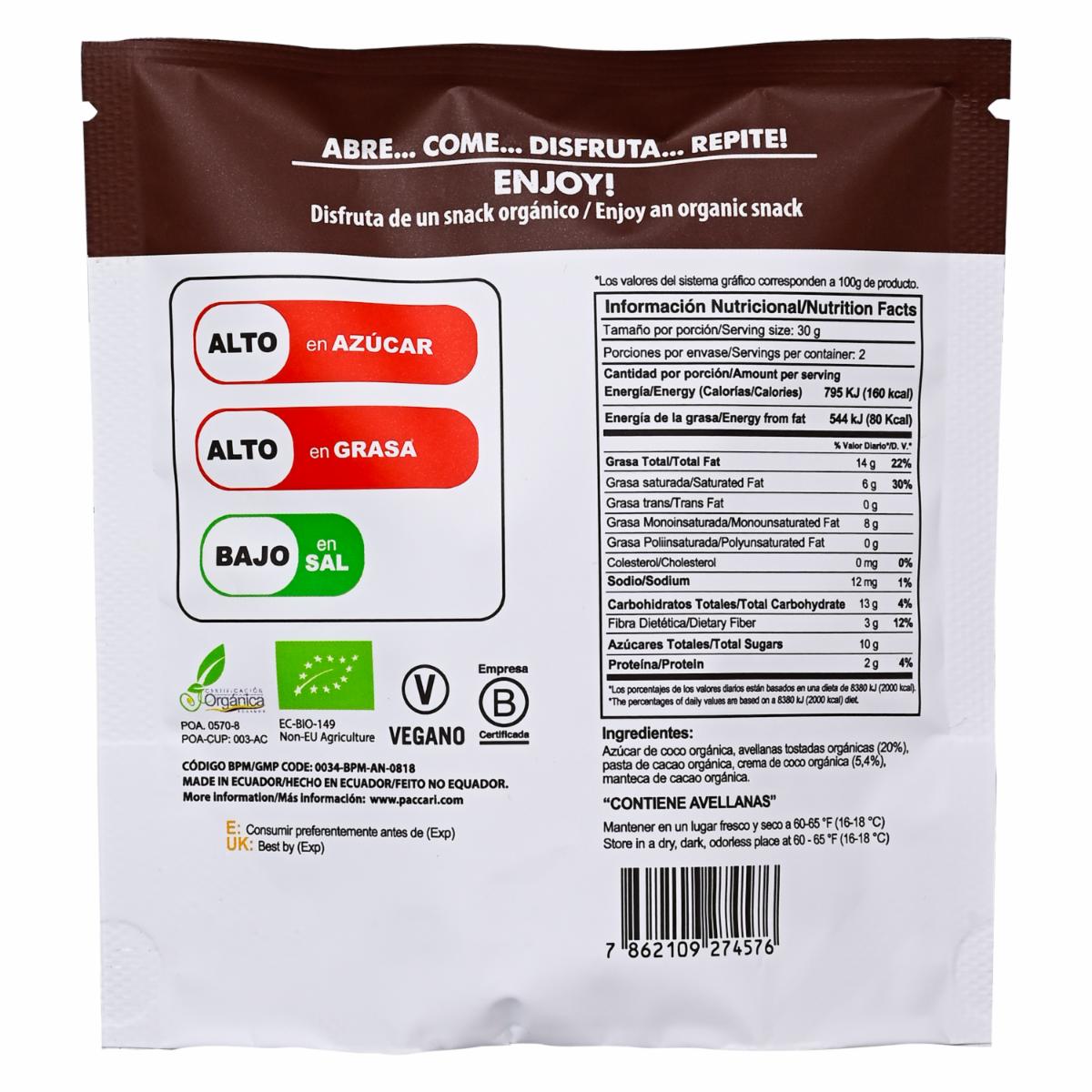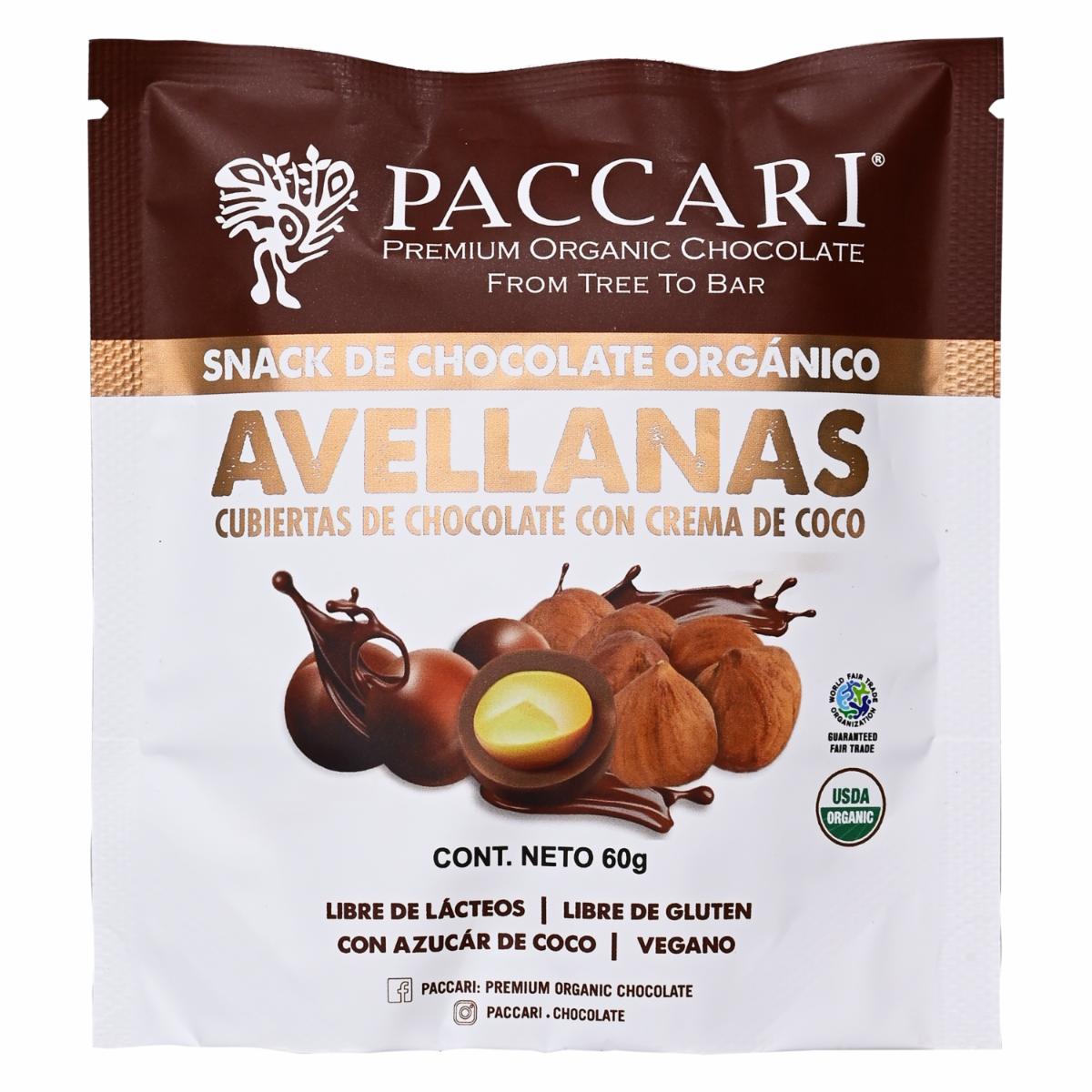 Avellanas Cubiertas De Chocolate Con Crema De Coco PACCARI 60 G