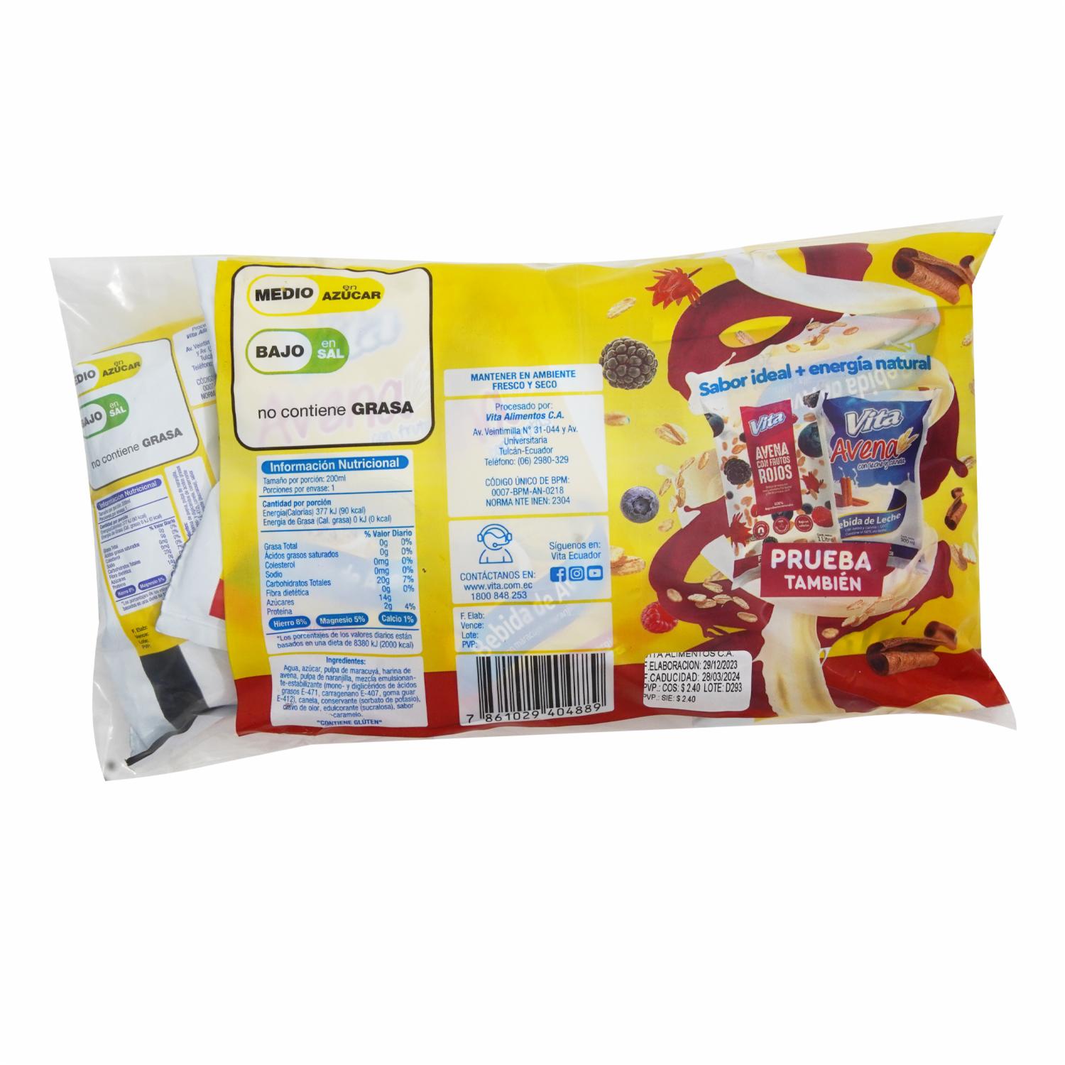 Avena Con Frutas VITA 6 X 200 Ml – VITA. Disponible en nuestros locales. Precio y stock pueden variar según la tienda.