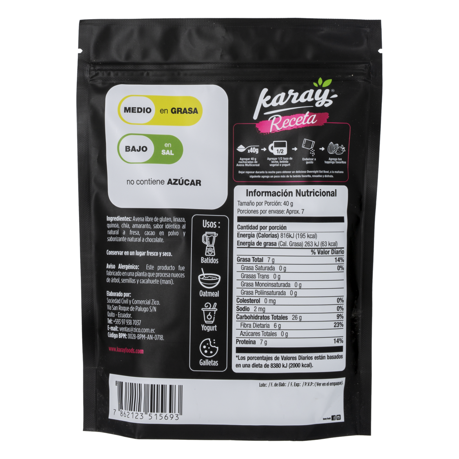 Avena Con Semillas Andinas Sabor A Fresa KARAY 300 G – KARAY. Disponible en nuestros locales. Precio y stock pueden variar según la tienda.